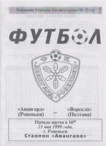 23 травня 1999 року. “Авангард” Ровеньки – “Ворскла-2” – 1:1