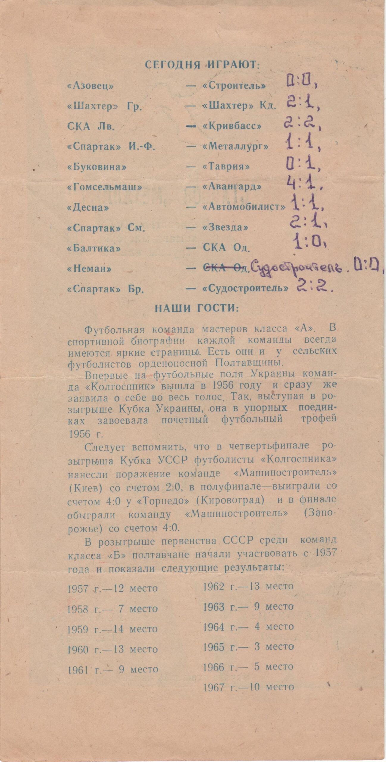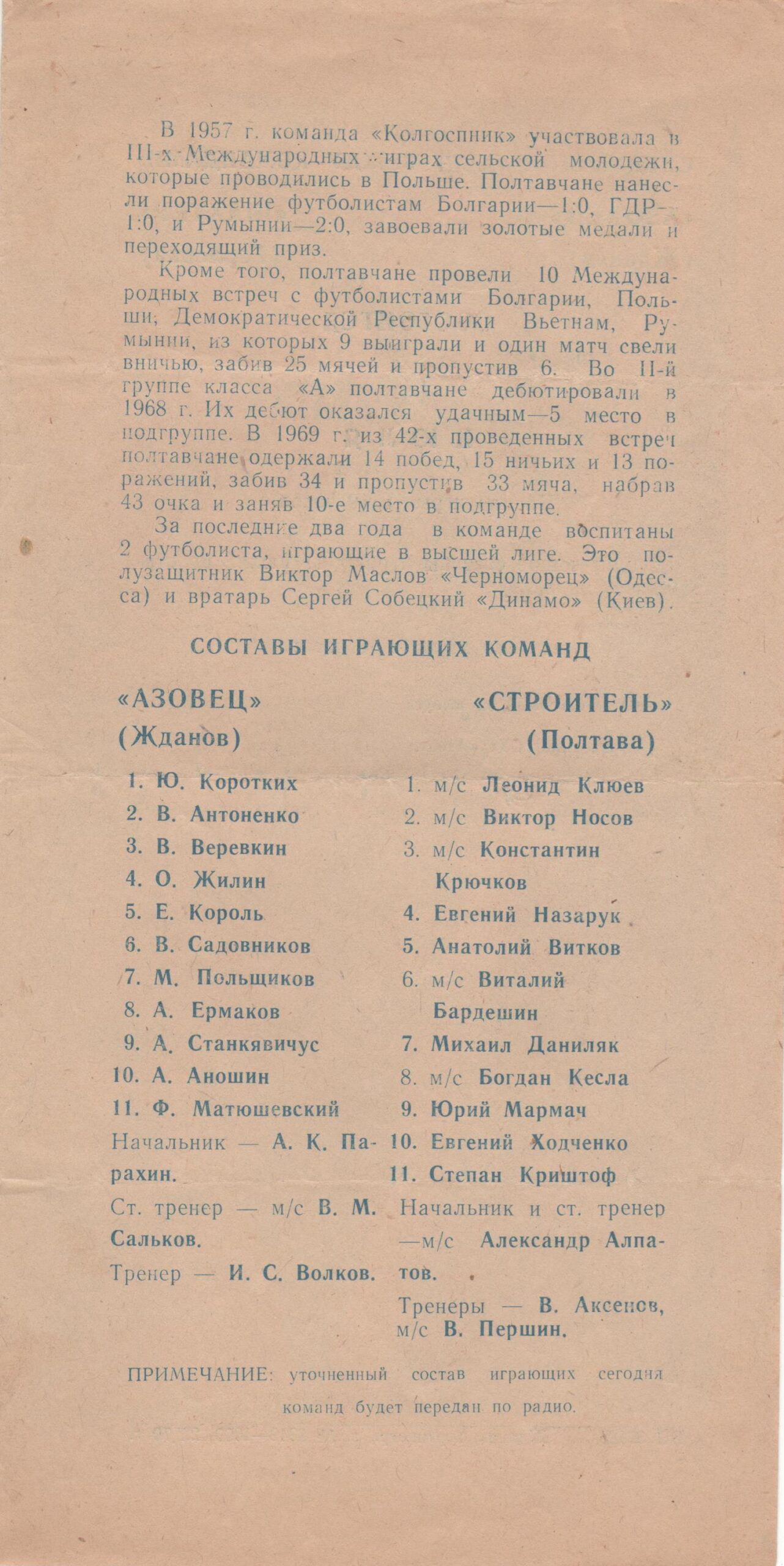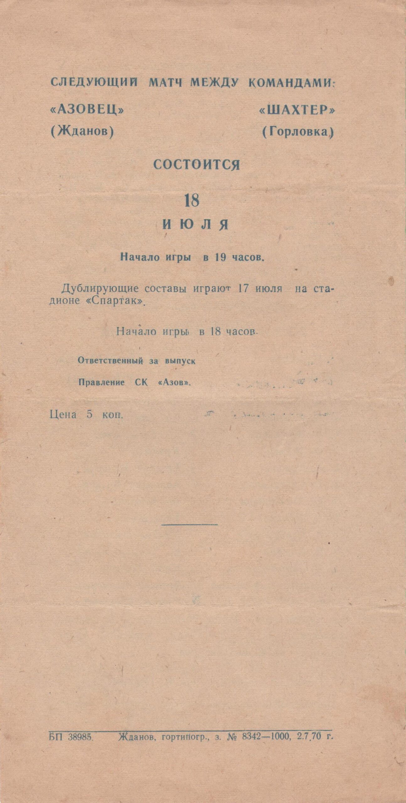 10 липня 1970 року. “Азовець” Жданов – “Будівельник” – 0:0