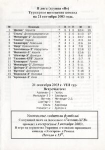 Чемпіонат України. 2003-2004. Друга ліга. Група “В”. 8 тур.