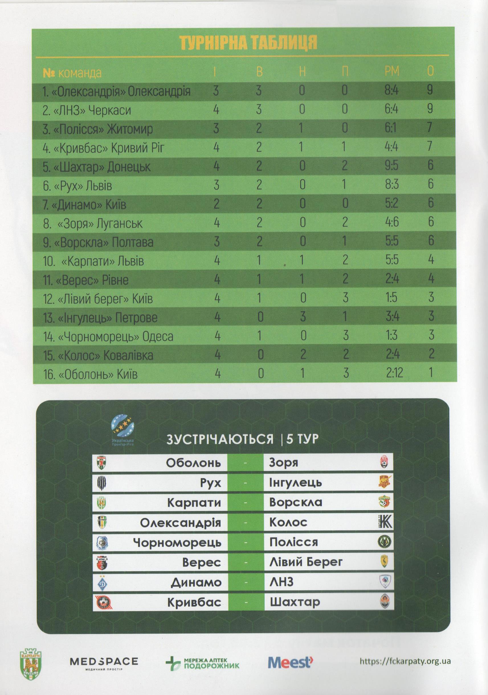 Чемпіонат України. 2024-2025. Прем’єр-ліга. 5 тур.