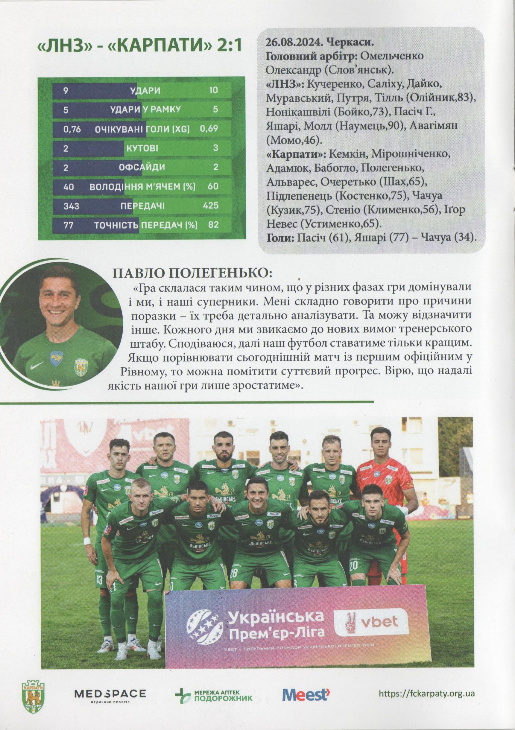 31 серпня 2024 року. “Карпати” Львів – “Ворскла” 1:1