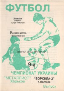 9 квітня 2000 року. “Металіст-2” Харків – “Ворскла-2” – 1:1 (Мачоган)