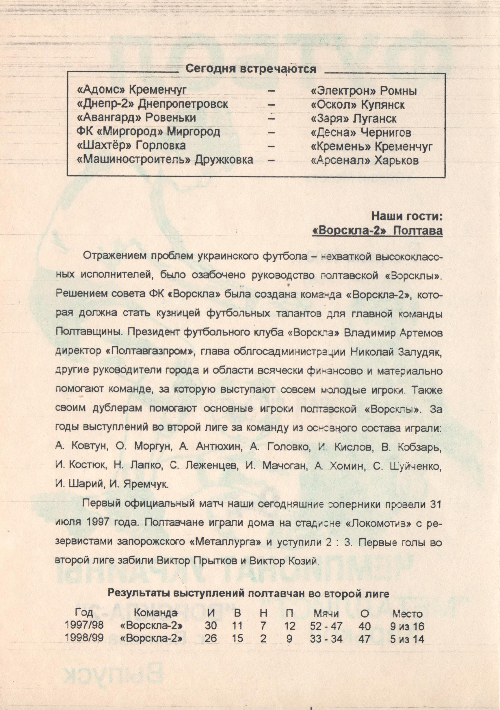 9 квітня 2000 року. “Металіст-2” Харків – “Ворскла-2” – 1:1 (Мачоган)