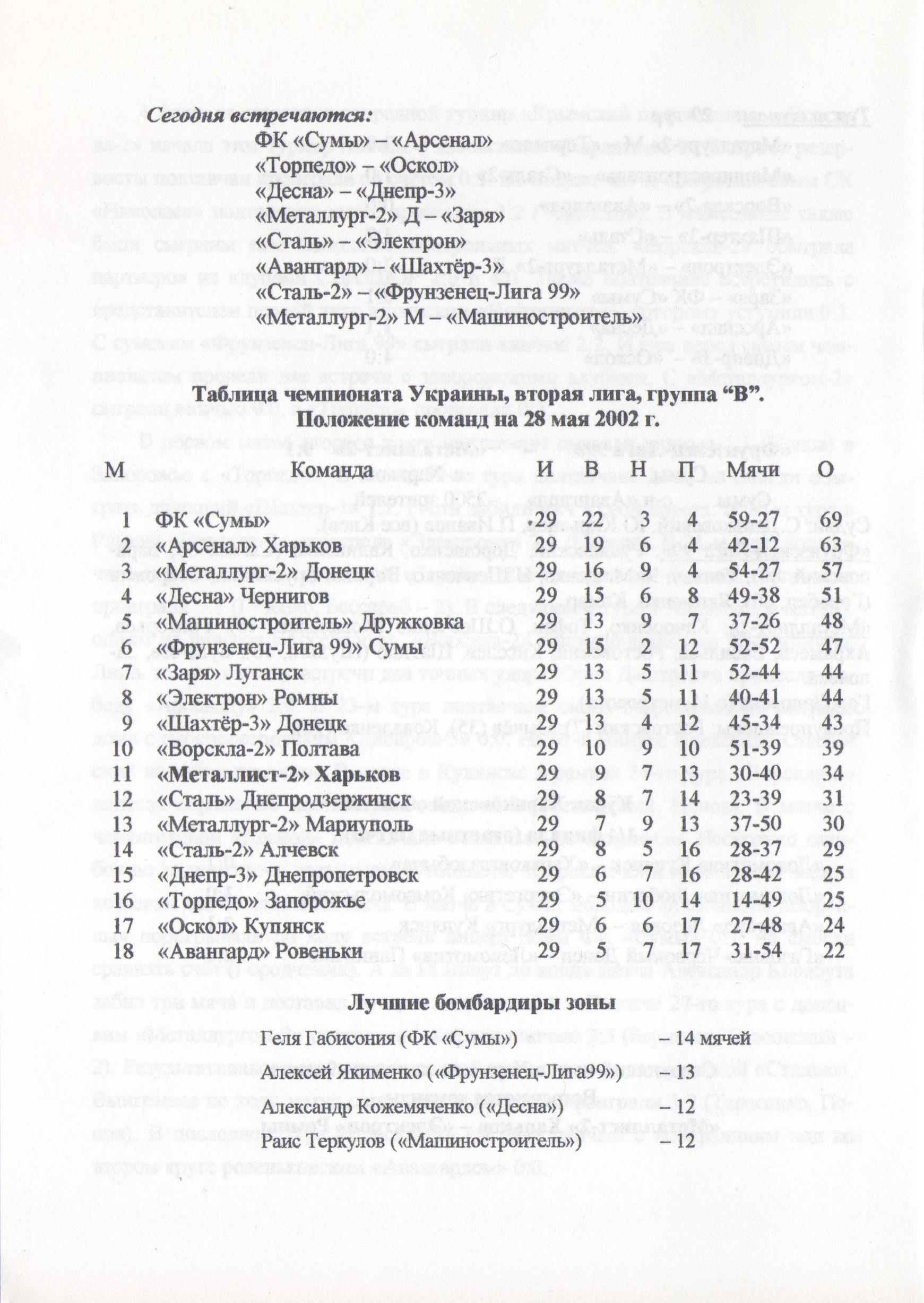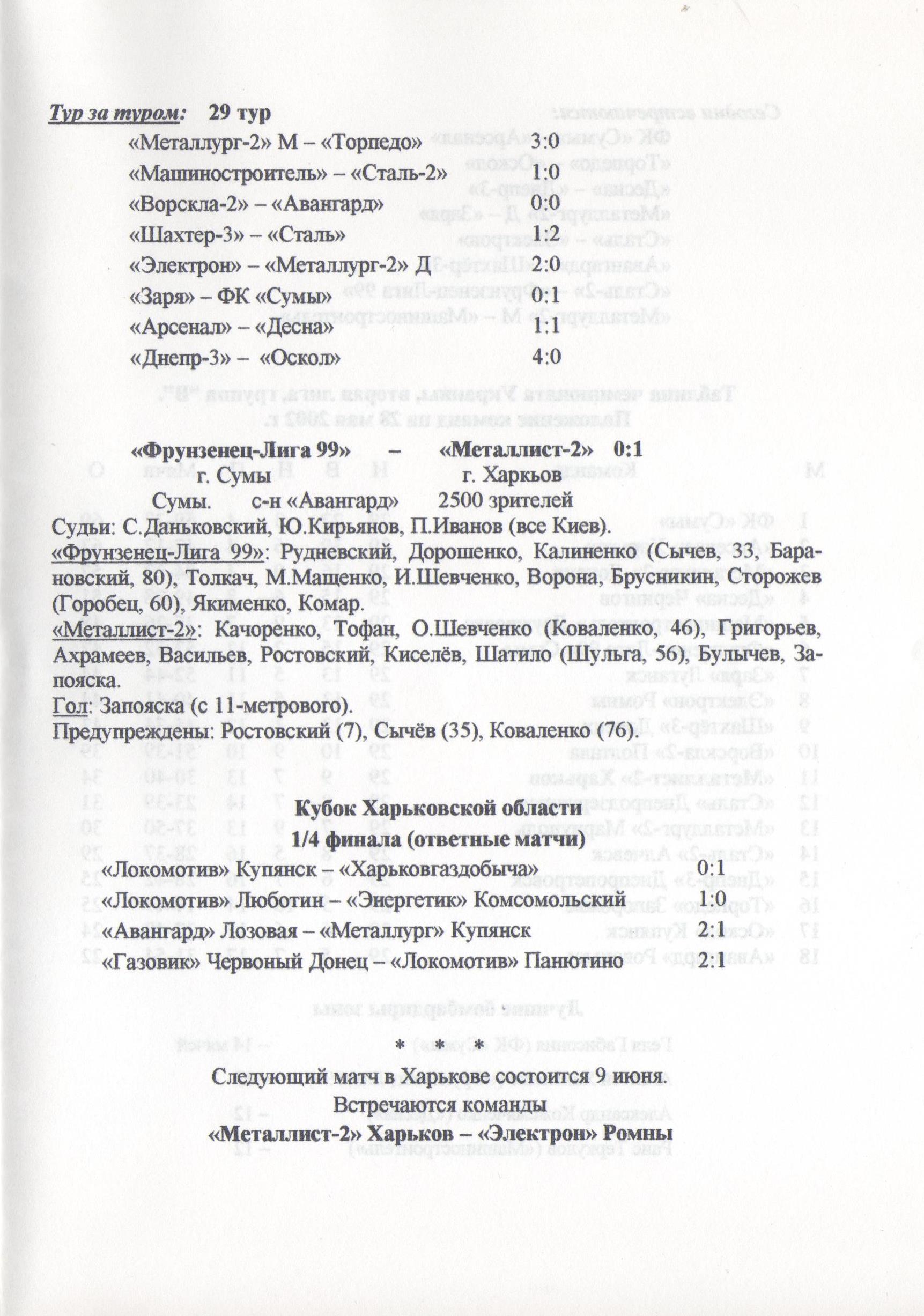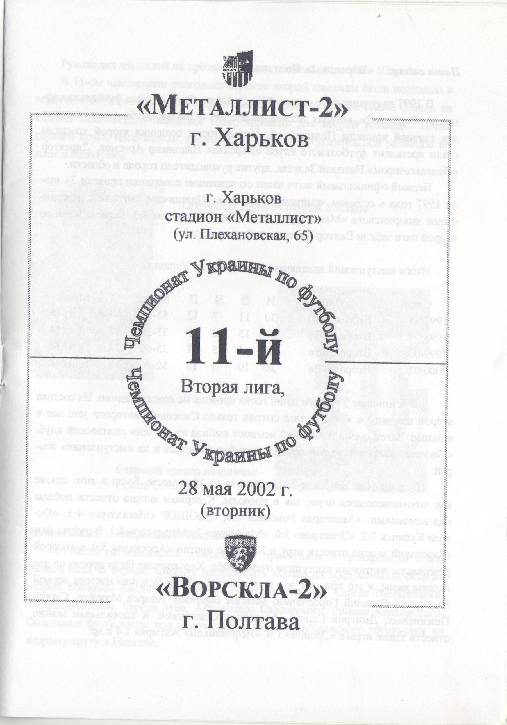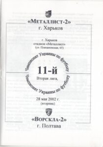 28 травня 2002 року. “Металіст-2” Харків – “Ворскла-2” – 3:0