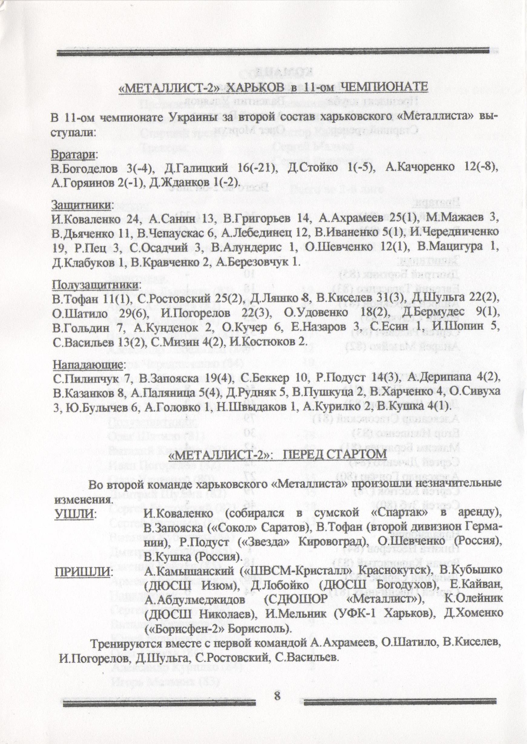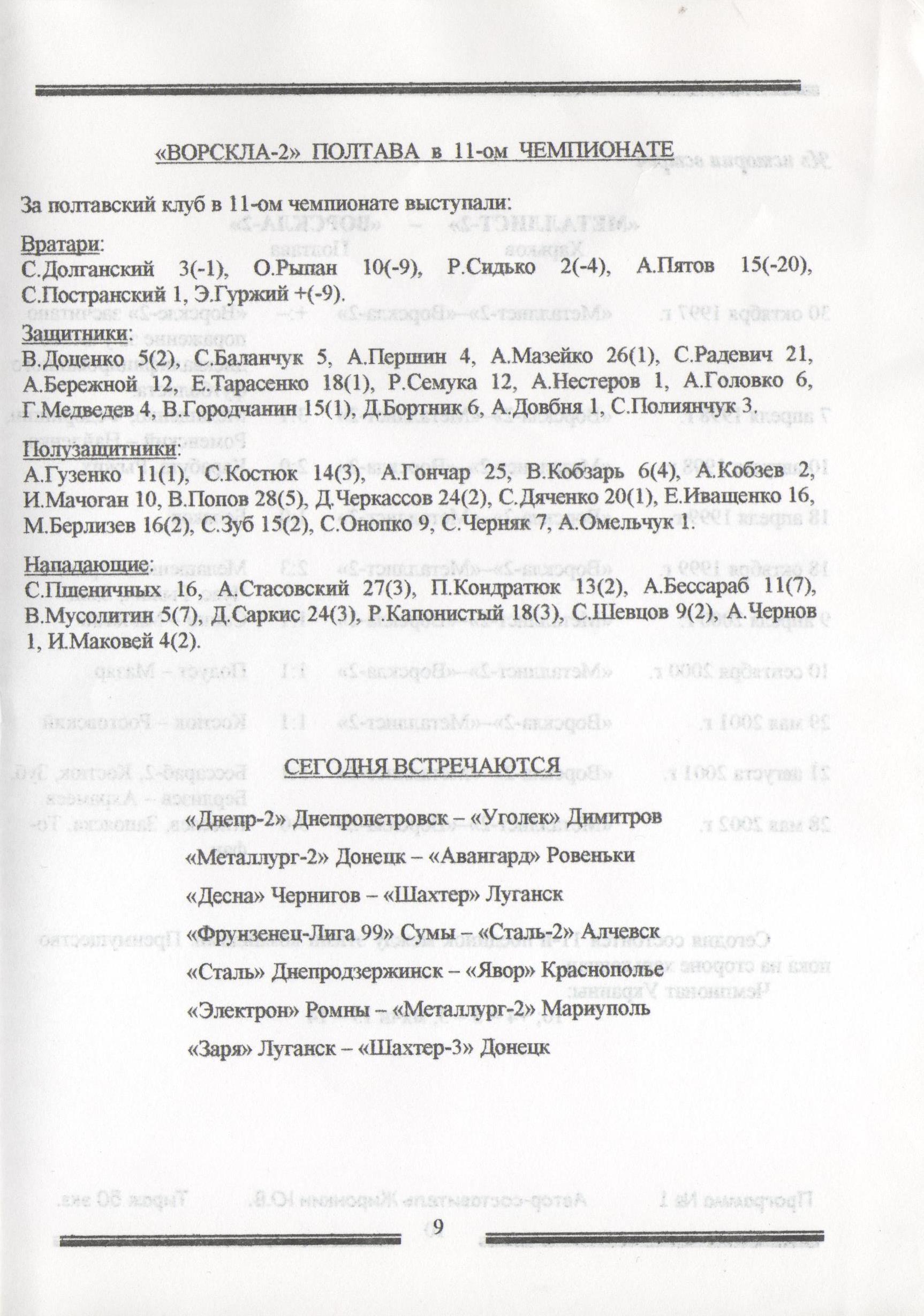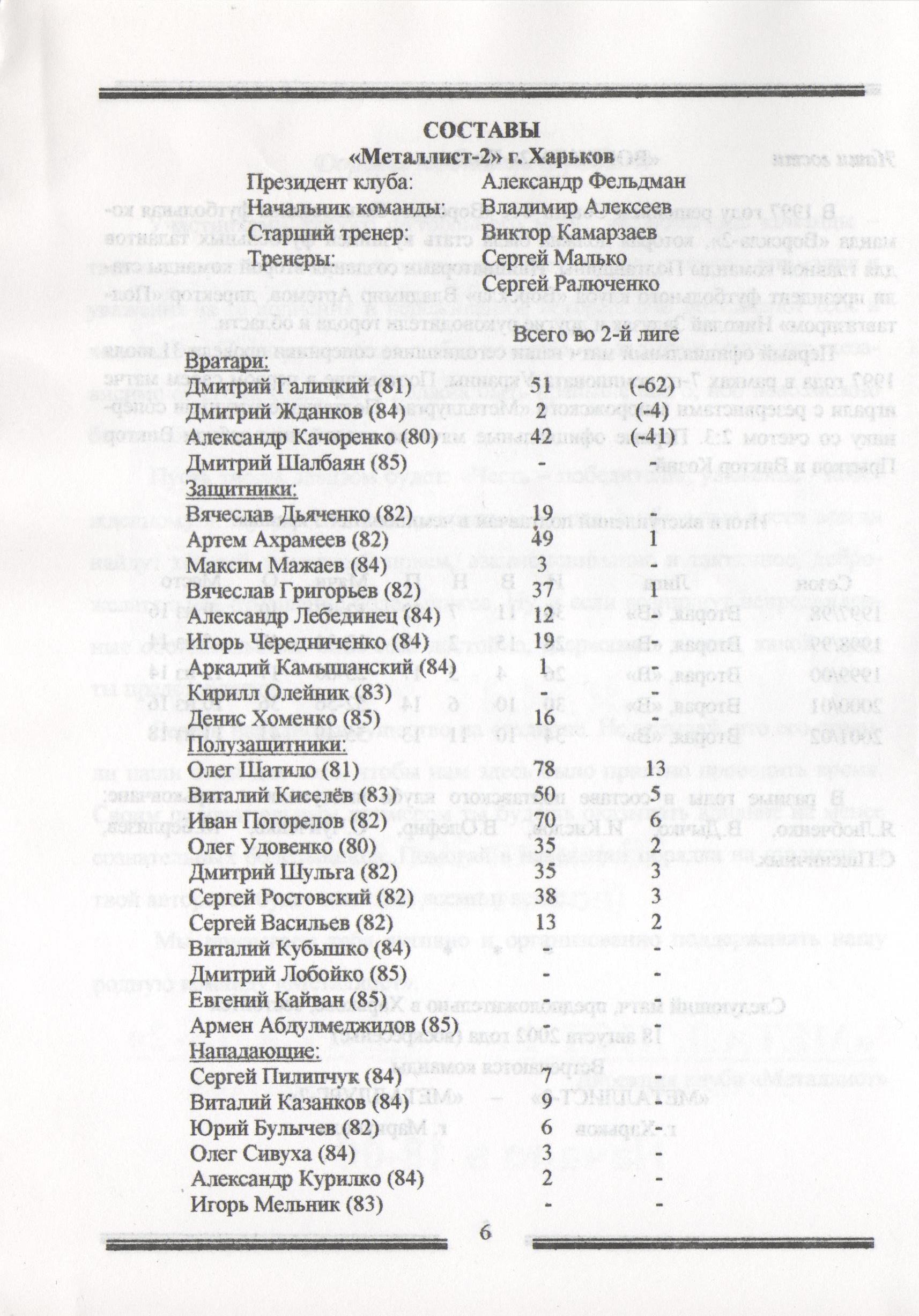 28 липня 2002 року. “Металіст-2” Харків – “Ворскла-2” – 1:1 (Кісельов – Бессараб)