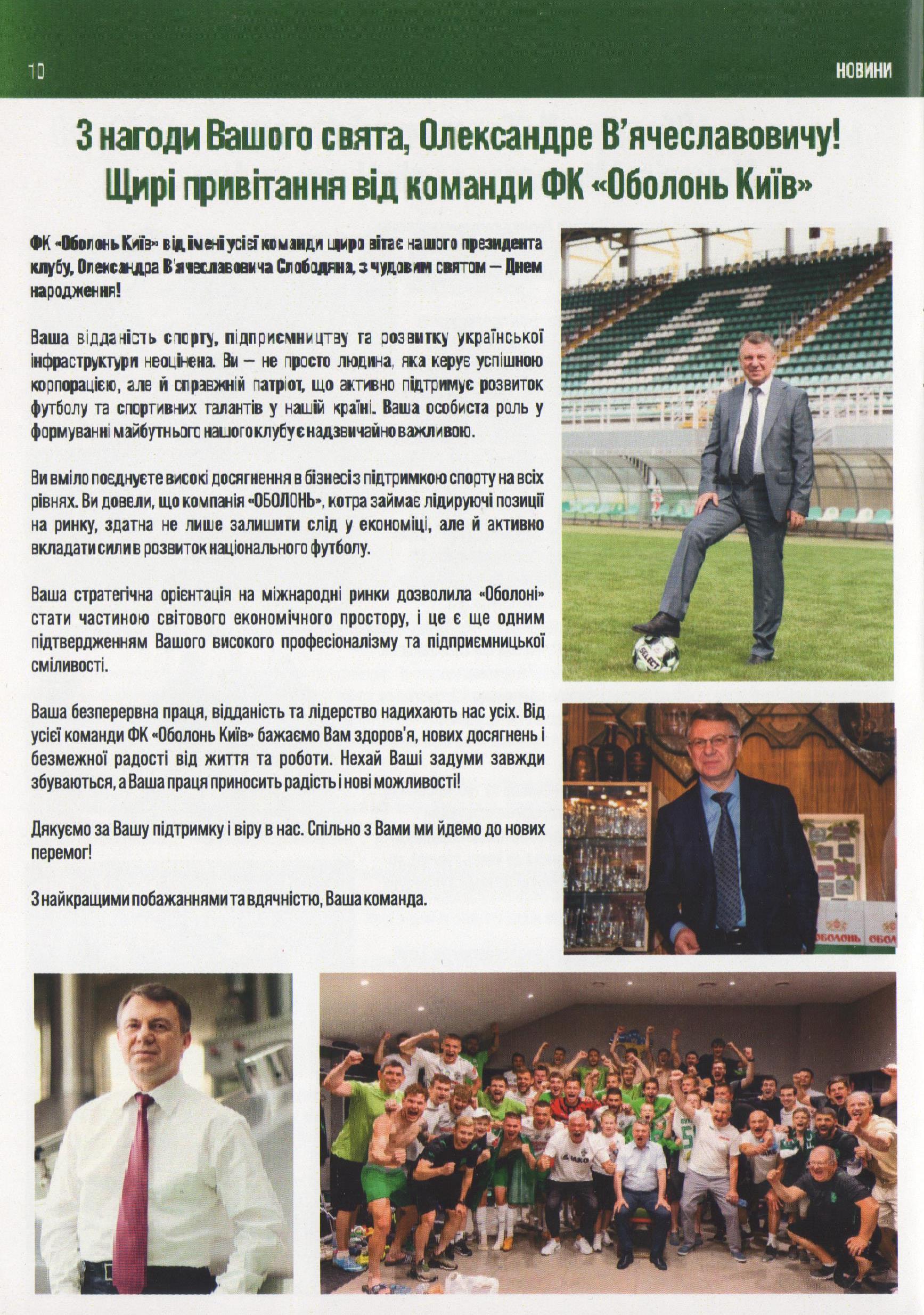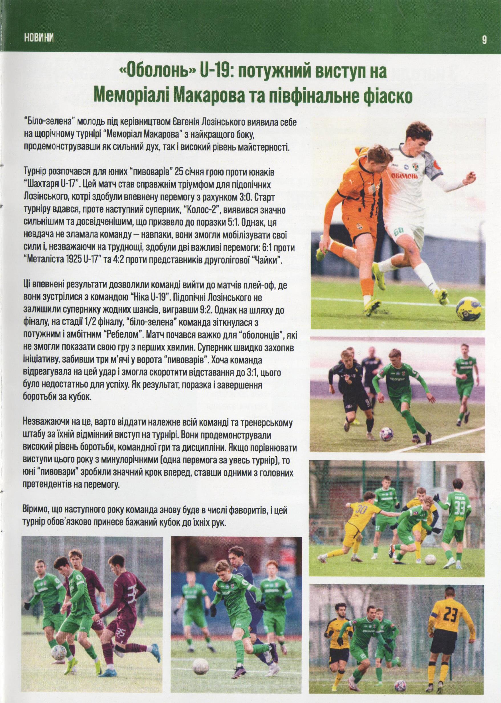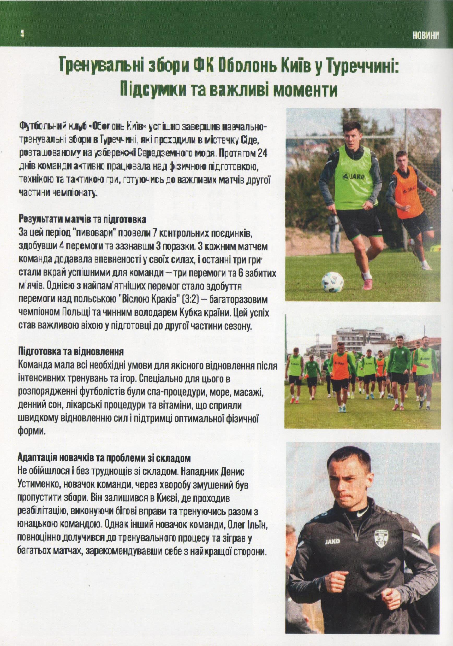 Видання – прес-служба ФК “Оболонь”. Колір. 12 сторінок. Мова – українська. Наклад – не вказано.