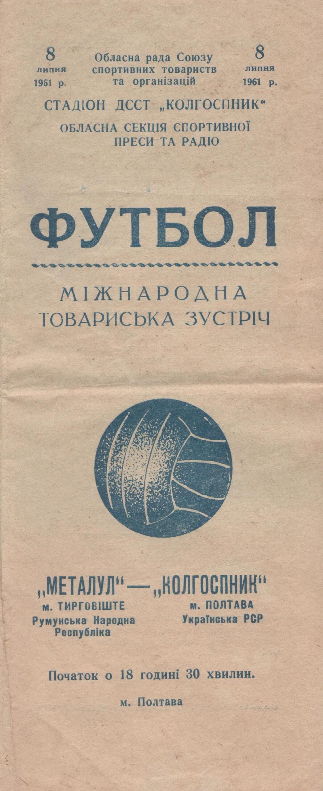 “Колгоспник” – “Металул” Тирговіште, Румунія (Товариський матч. 1961)