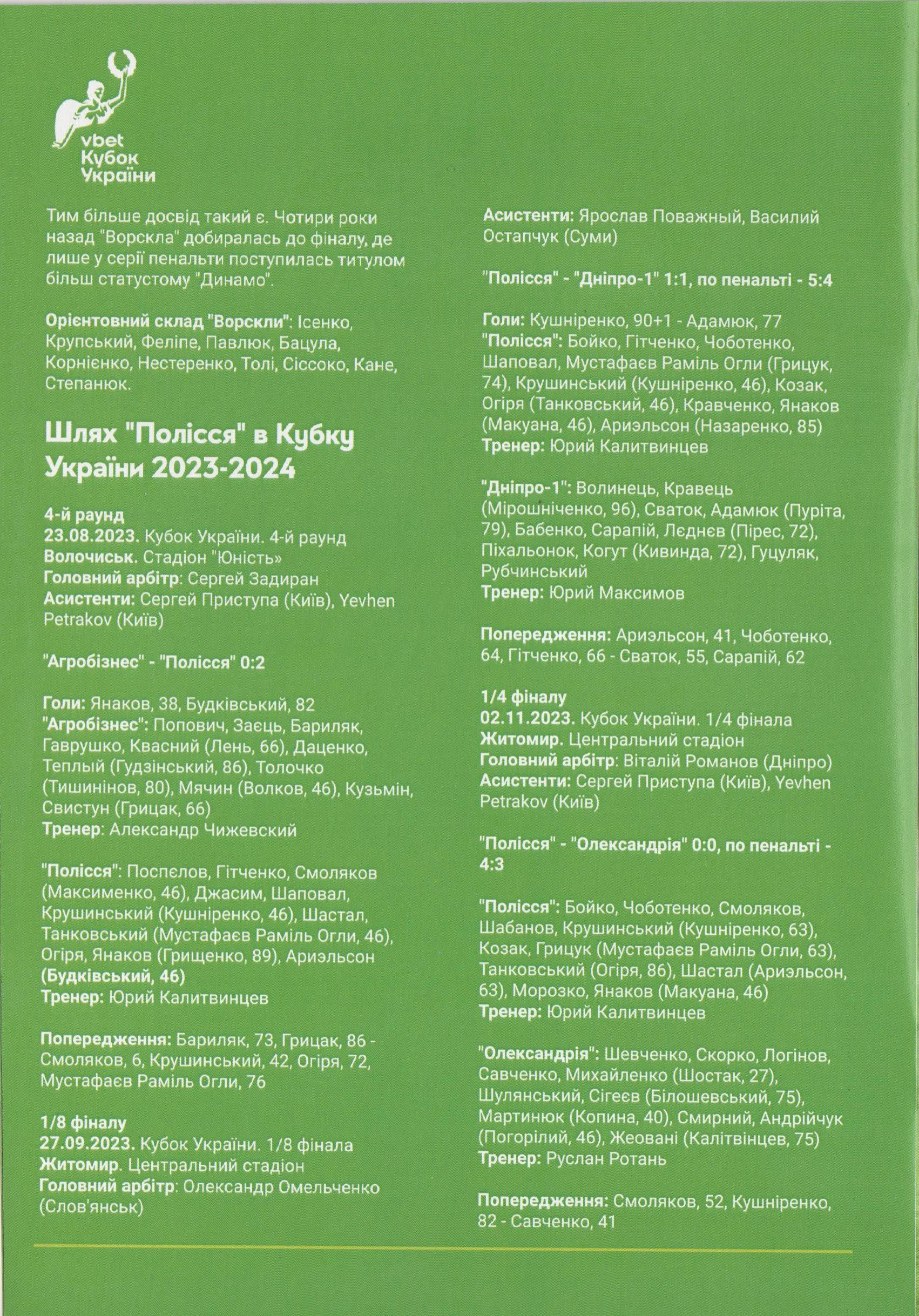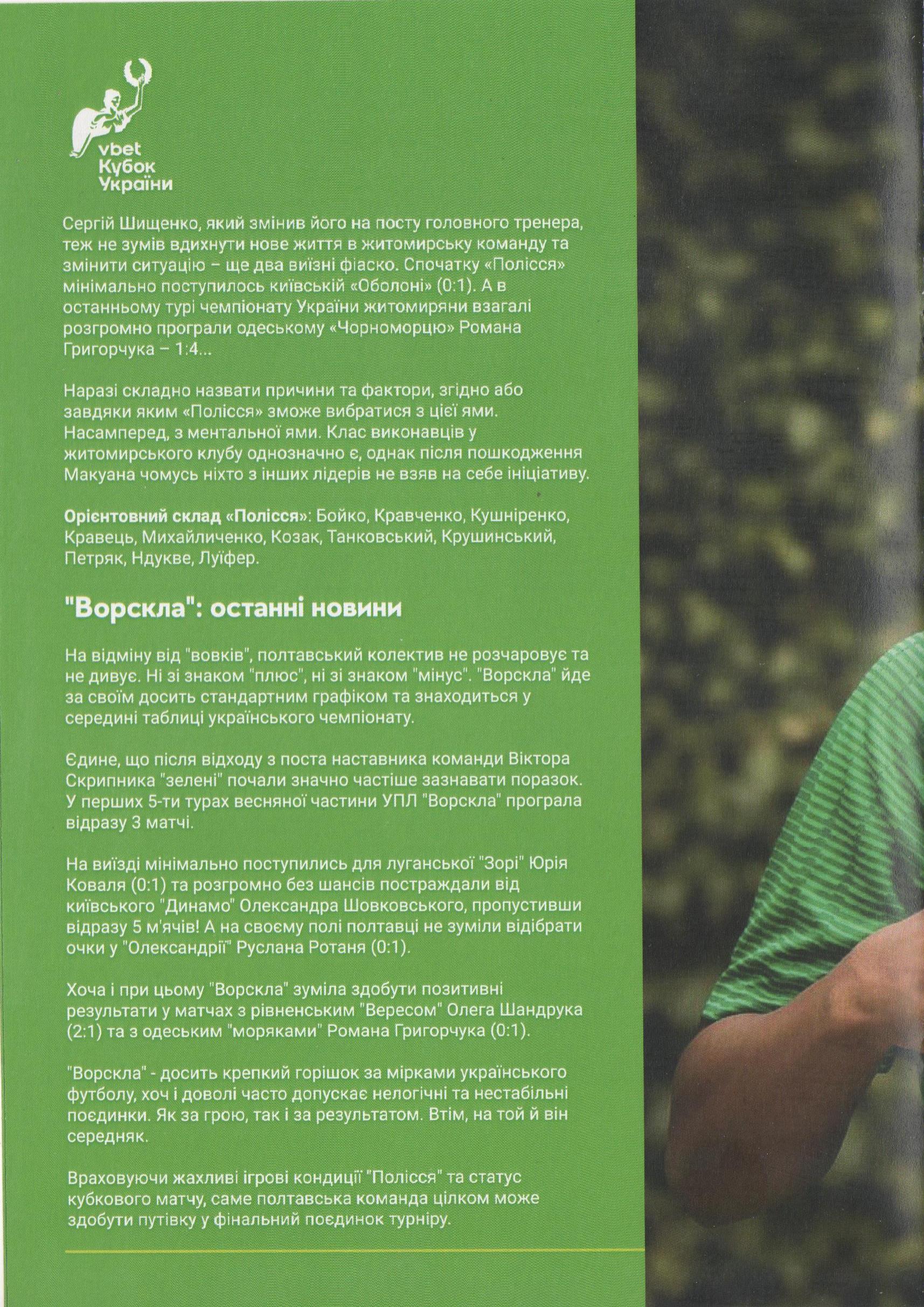 “Полісся” Житомир – “Ворскла” (Кубок України. 2023-2024. 1/2 фіналу) Альтернатива