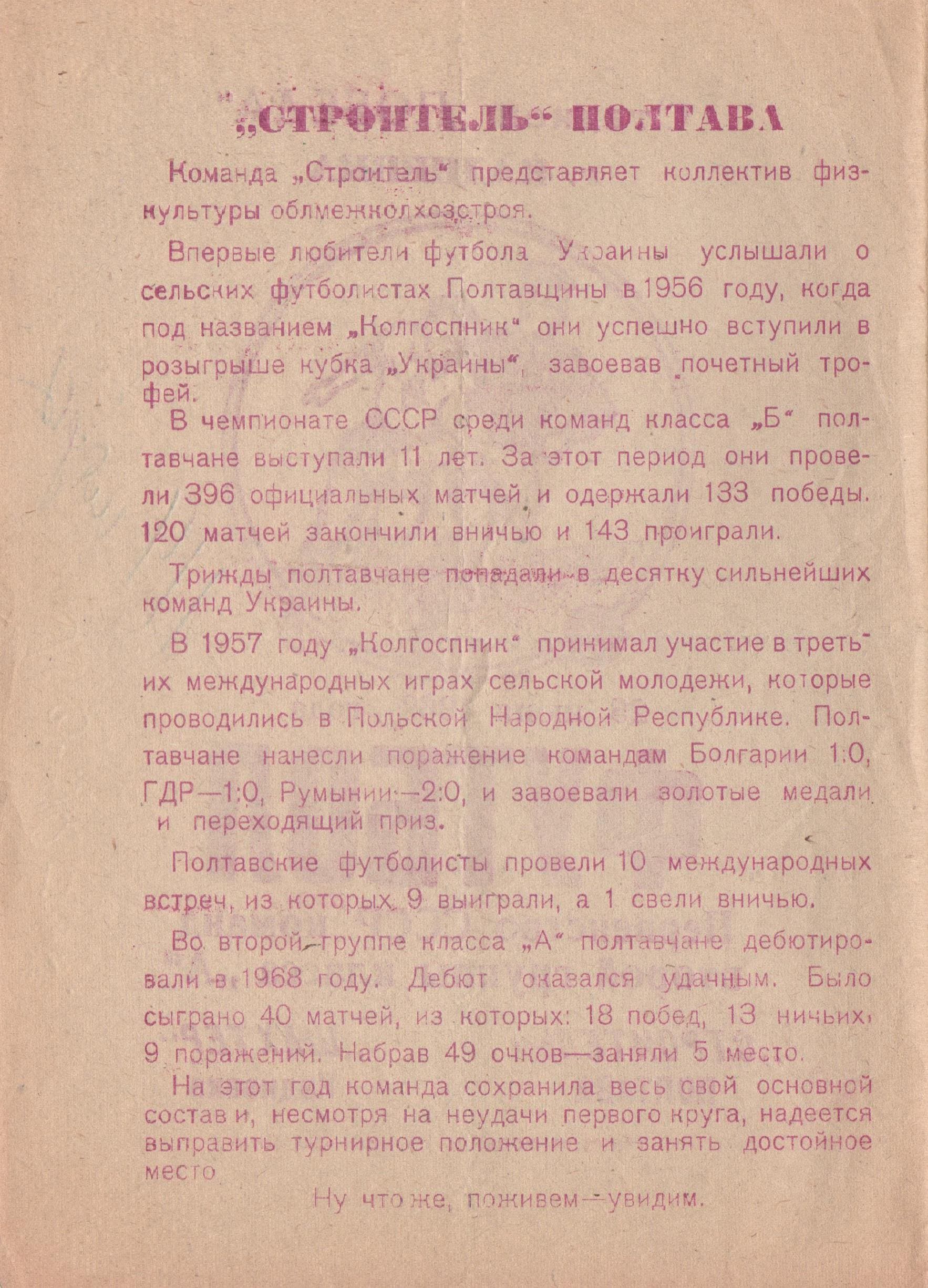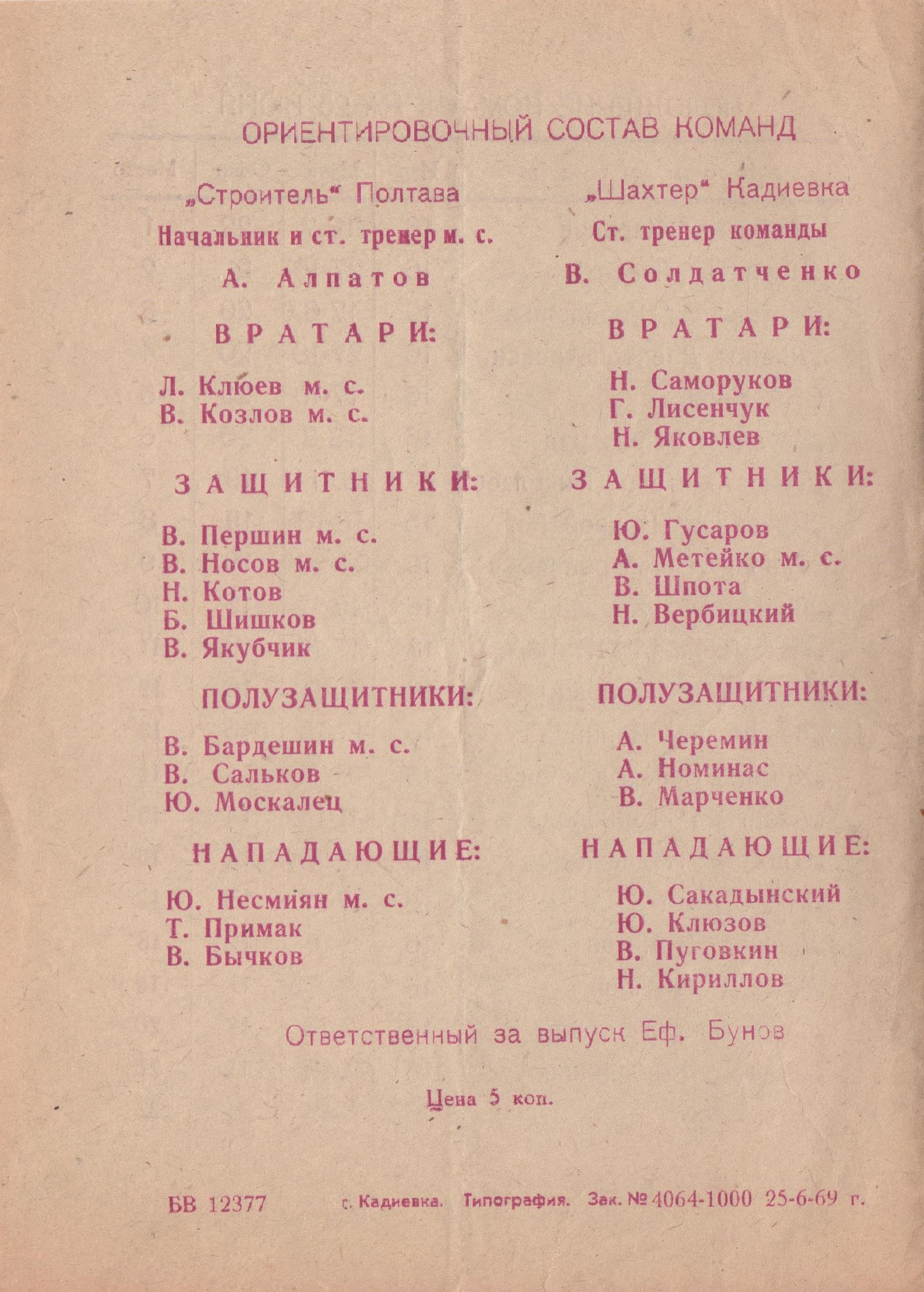 “Шахтар” Кадіївка – “Будівельник” (Чемпіонат СРСР. 1969. Друга група класу А. ІІІ підгрупа)