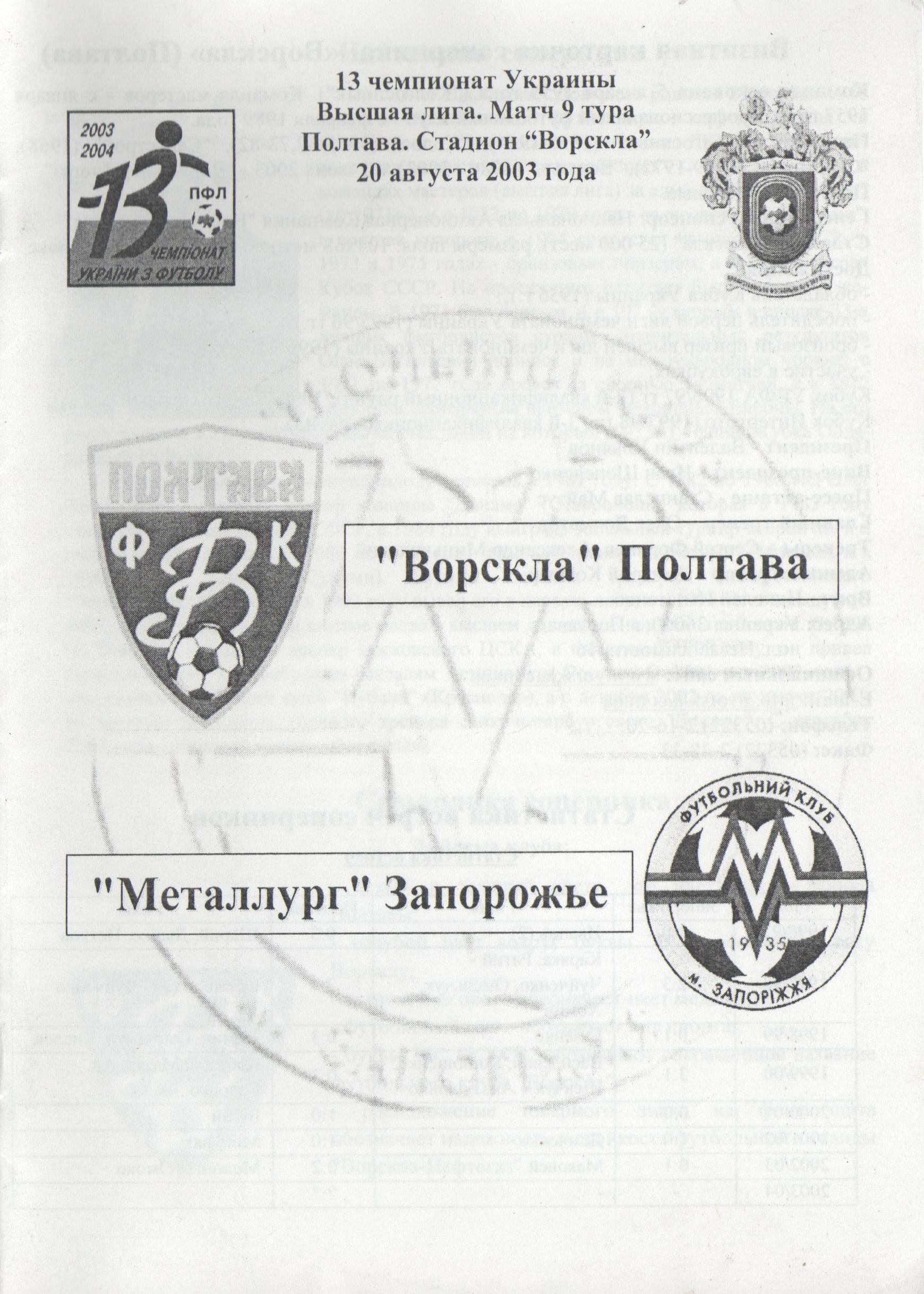 “Ворскла” – “Металург” Запоріжжя (Чемпіонат України. 2003-2004. Вища ліга. 9 тур) Альтернатива 2