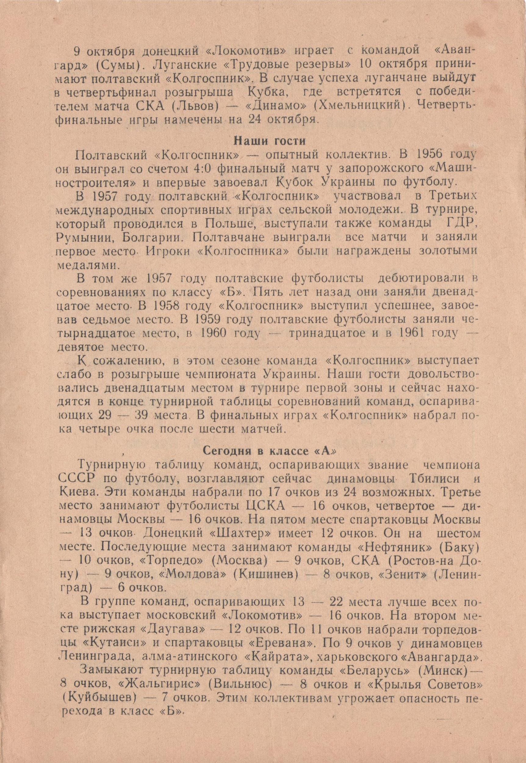 10 жовтня 1962 року. “Трудові Резерви” Луганськ – “Колгоспник” Полтава 3:2