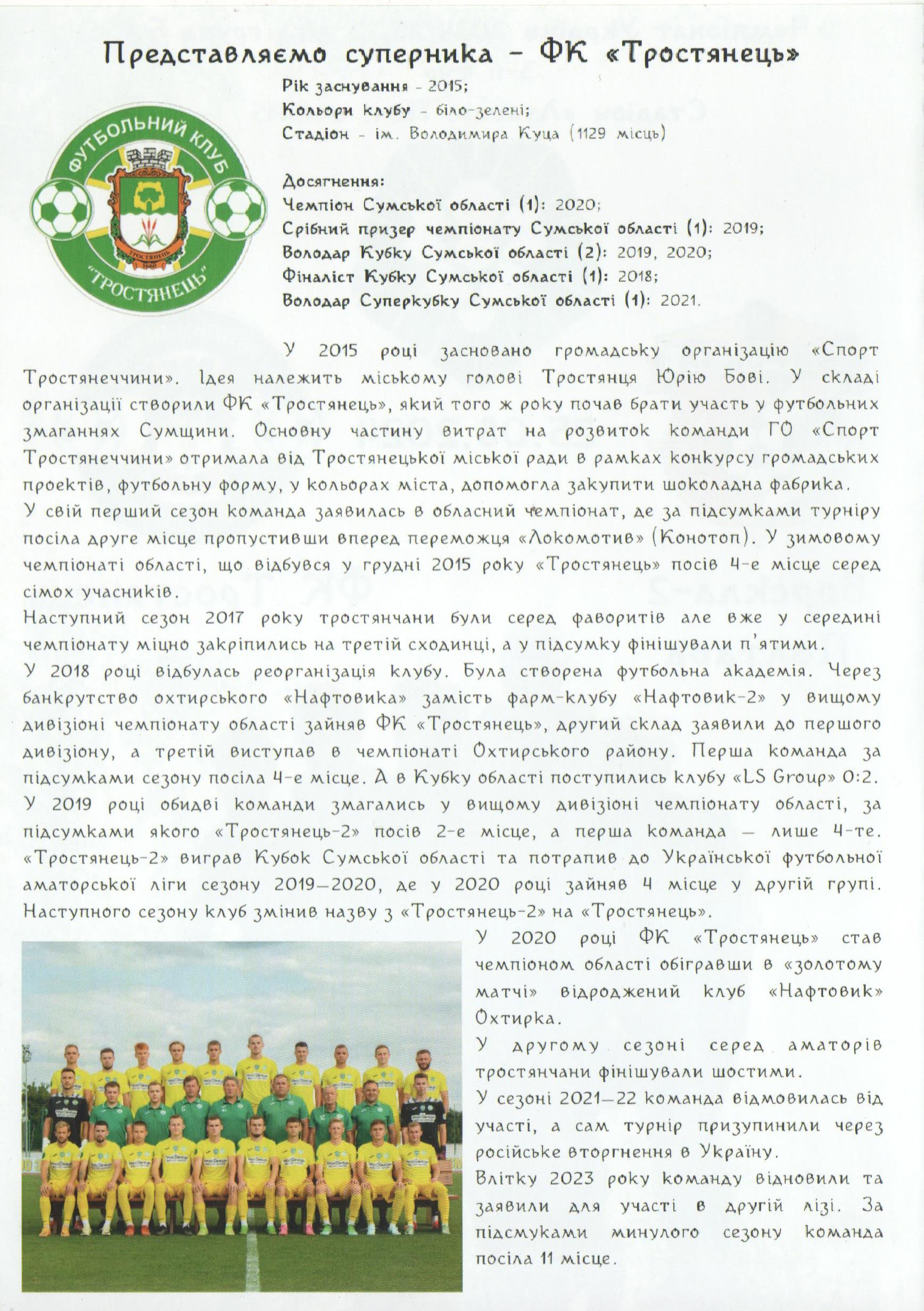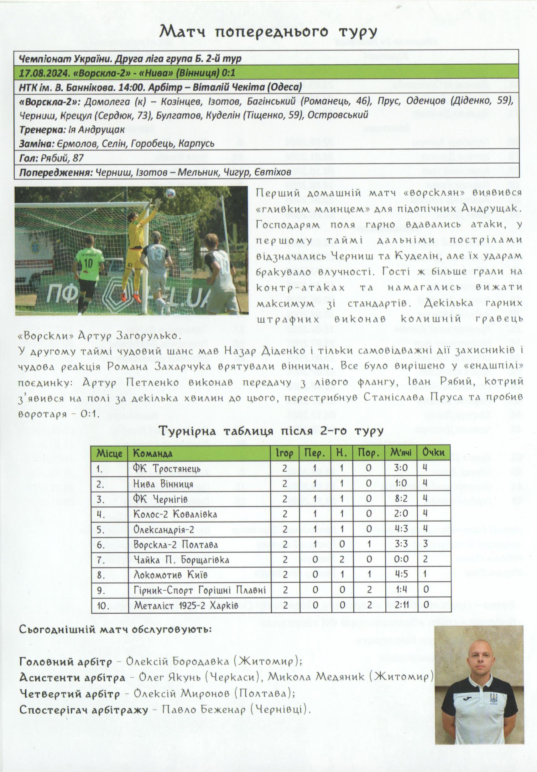 25 серпня 2024 року. “Ворскла-2” – ФК “Тростянець” – 2:1