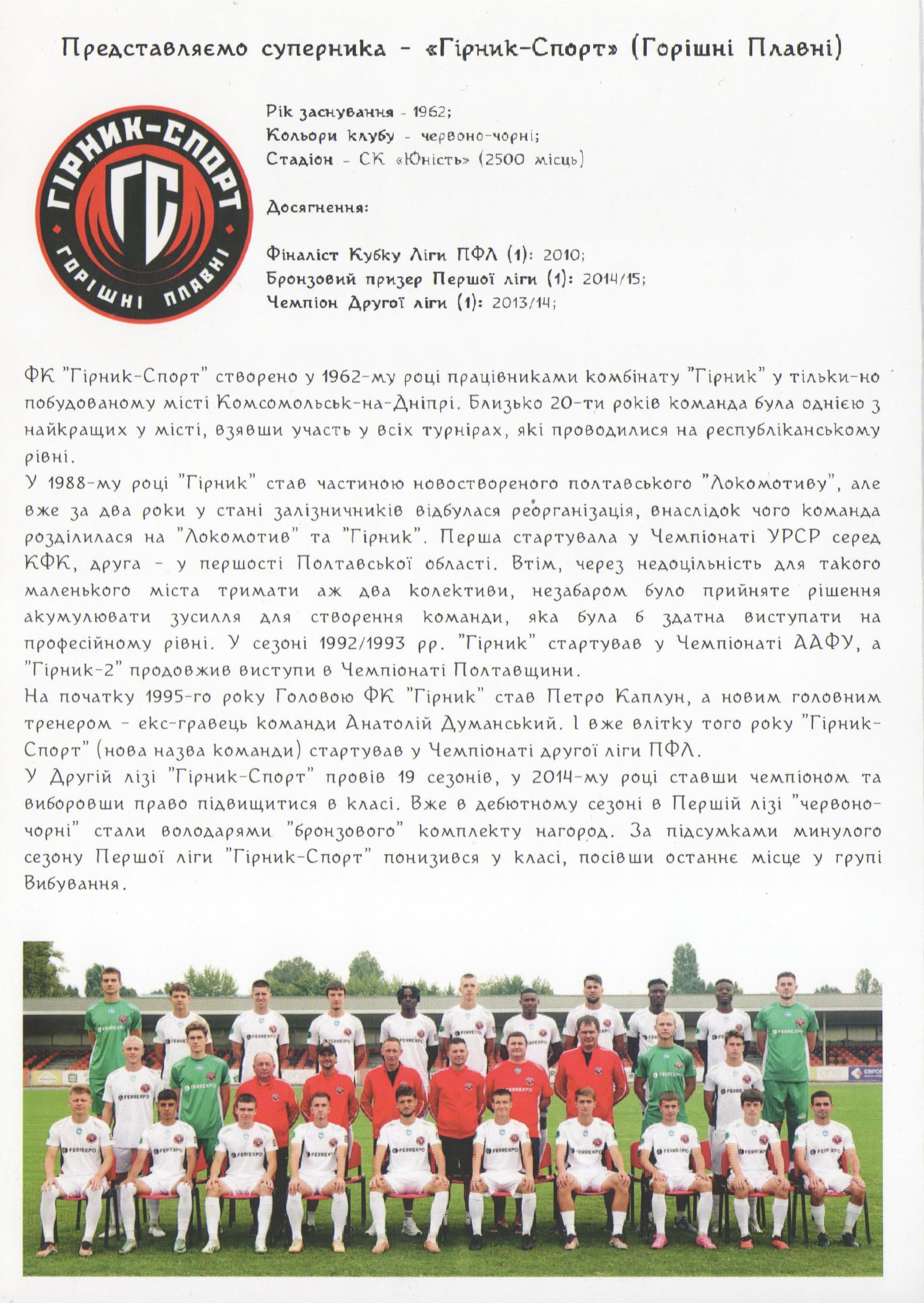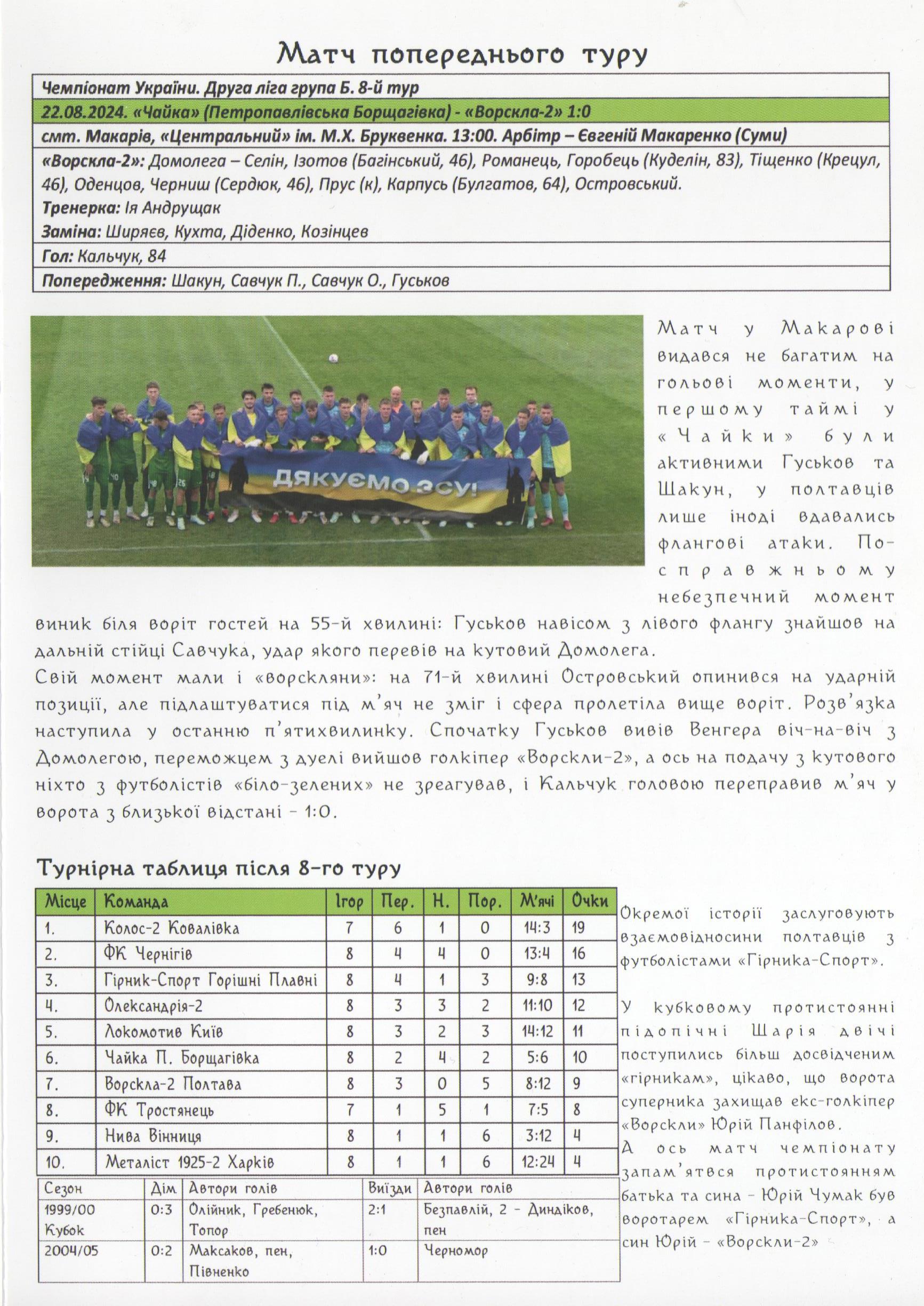 7 жовтня 2024 року. “Ворскла-2” – “Гірник-Спорт” Горішні Плавні – 1:2