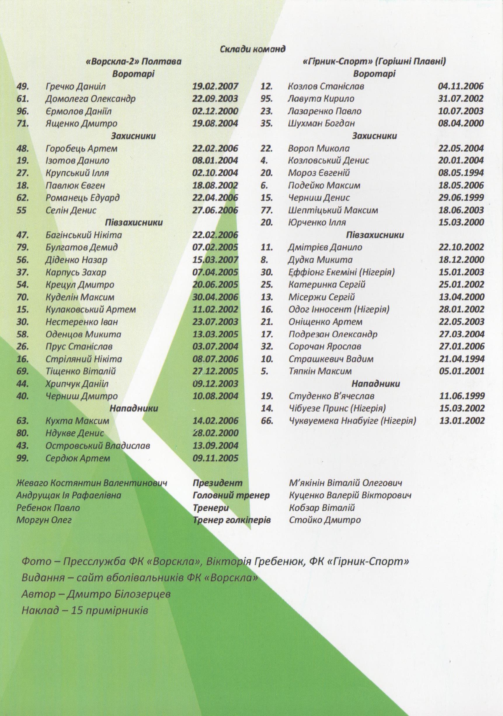 Автори – сайт вболівальників ФК “Ворскла”. Обсяг – 4 сторінки. Мова – українська. Наклад – 15 примірників.