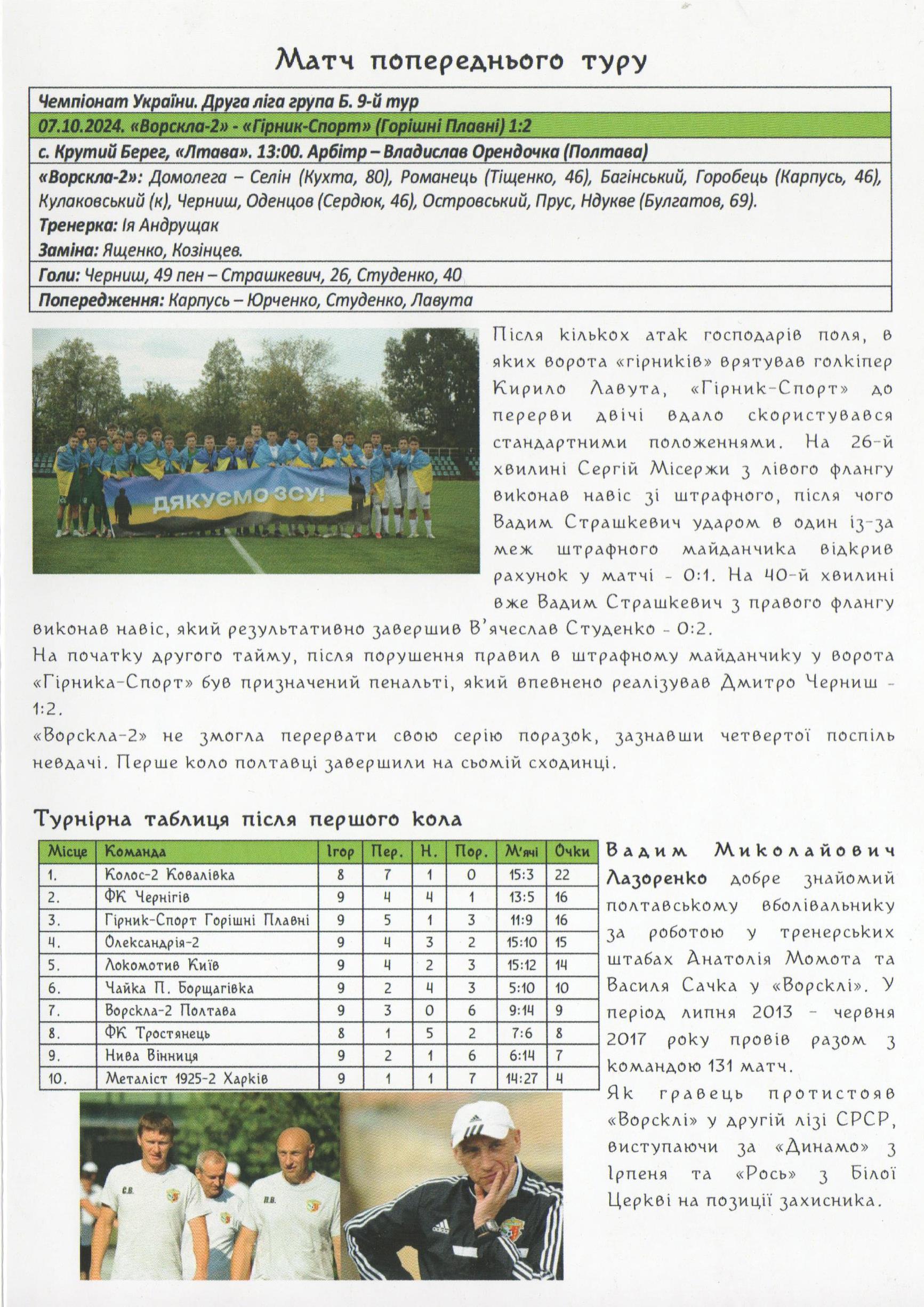 11 жовтня 2024 року. “Ворскла-2” – “Локомотив” Київ – 0:1