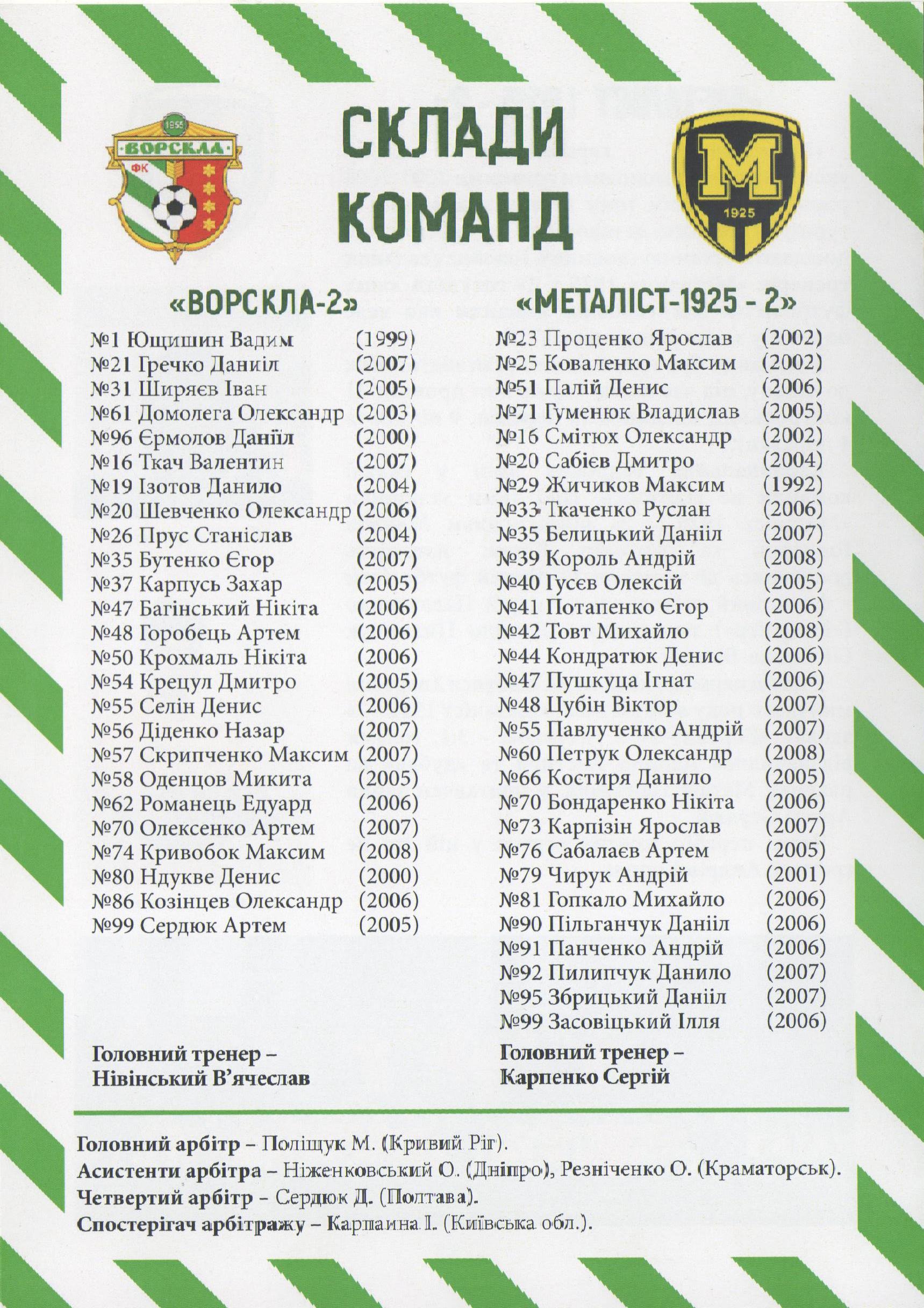 10 квітня 2025 року. “Ворскла-2” – “Металіст 1925 Б” Харків – 1:1