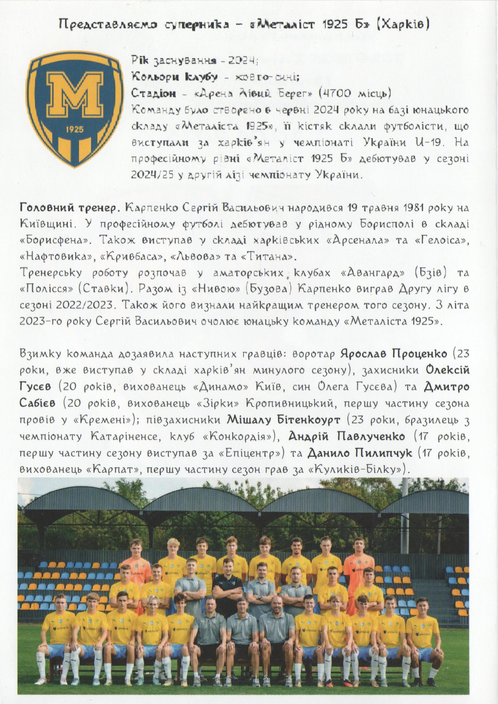 10 квітня 2025 року. “Ворскла-2” – “Металіст 1925 Б” Харків – 1:1