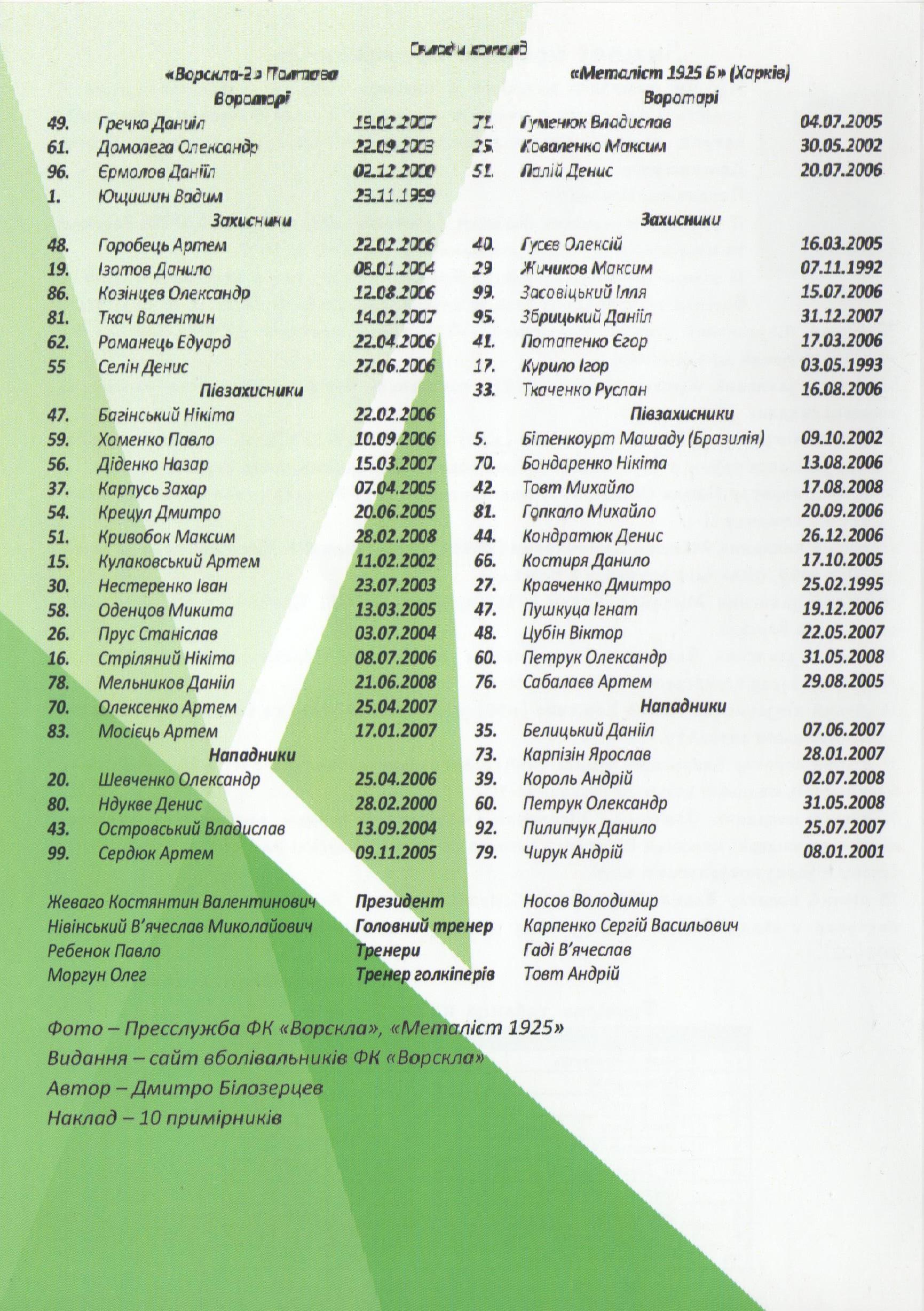Автори – сайт вболівальників ФК “Ворскла”. Обсяг – 4 сторінки. Мова – українська. Наклад – 10 примірників.
