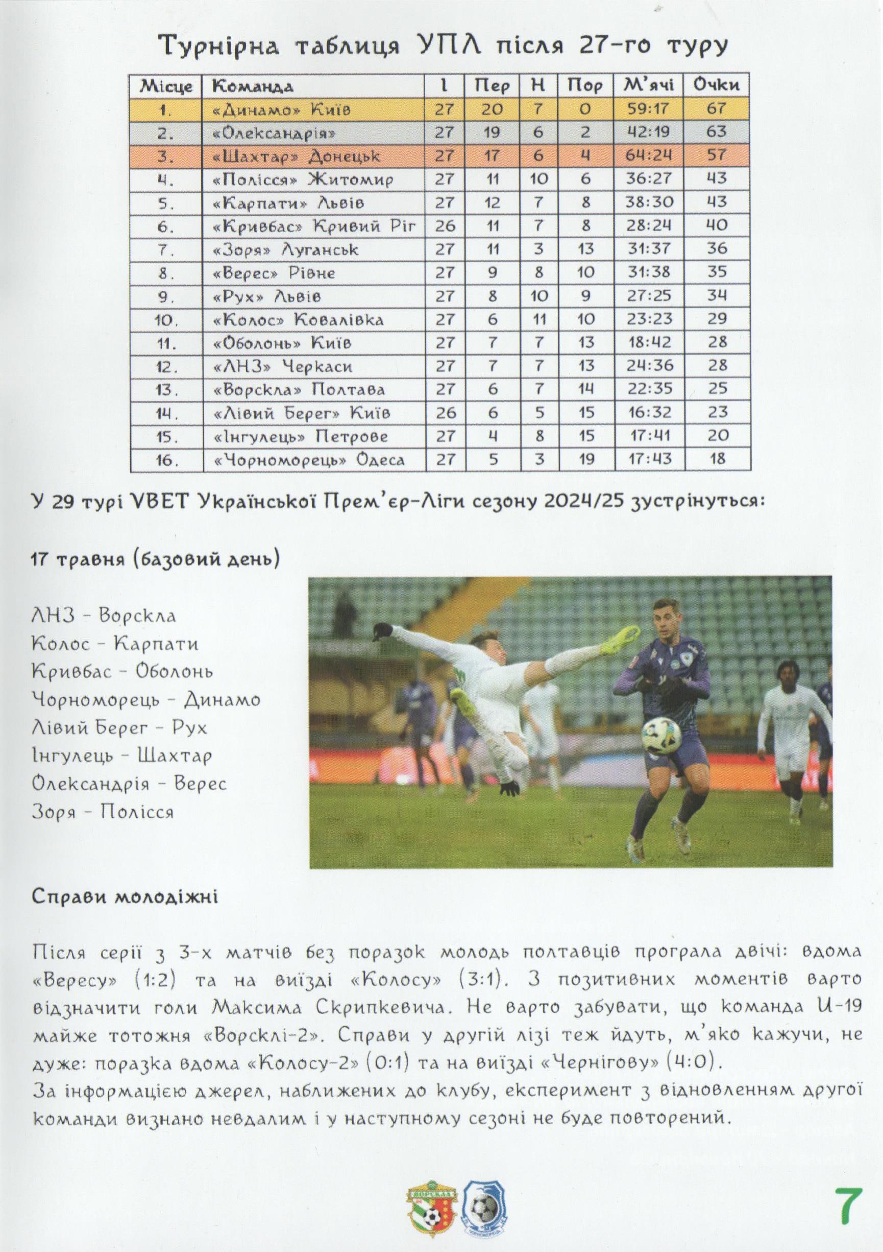 Чемпіонат України. 2024-2025. Прем’єр-ліга. 28 тур.