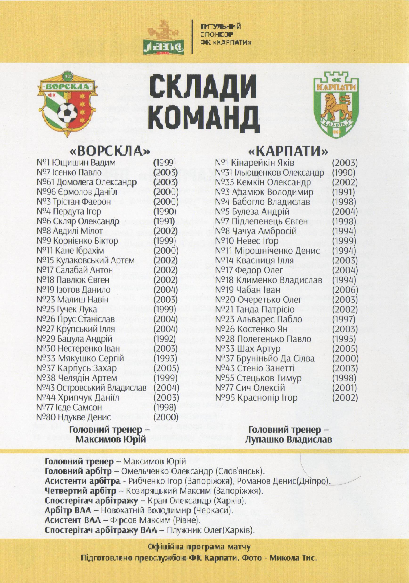 6 березня 2025 року. “Ворскла” – “Карпати” Львів 0:0