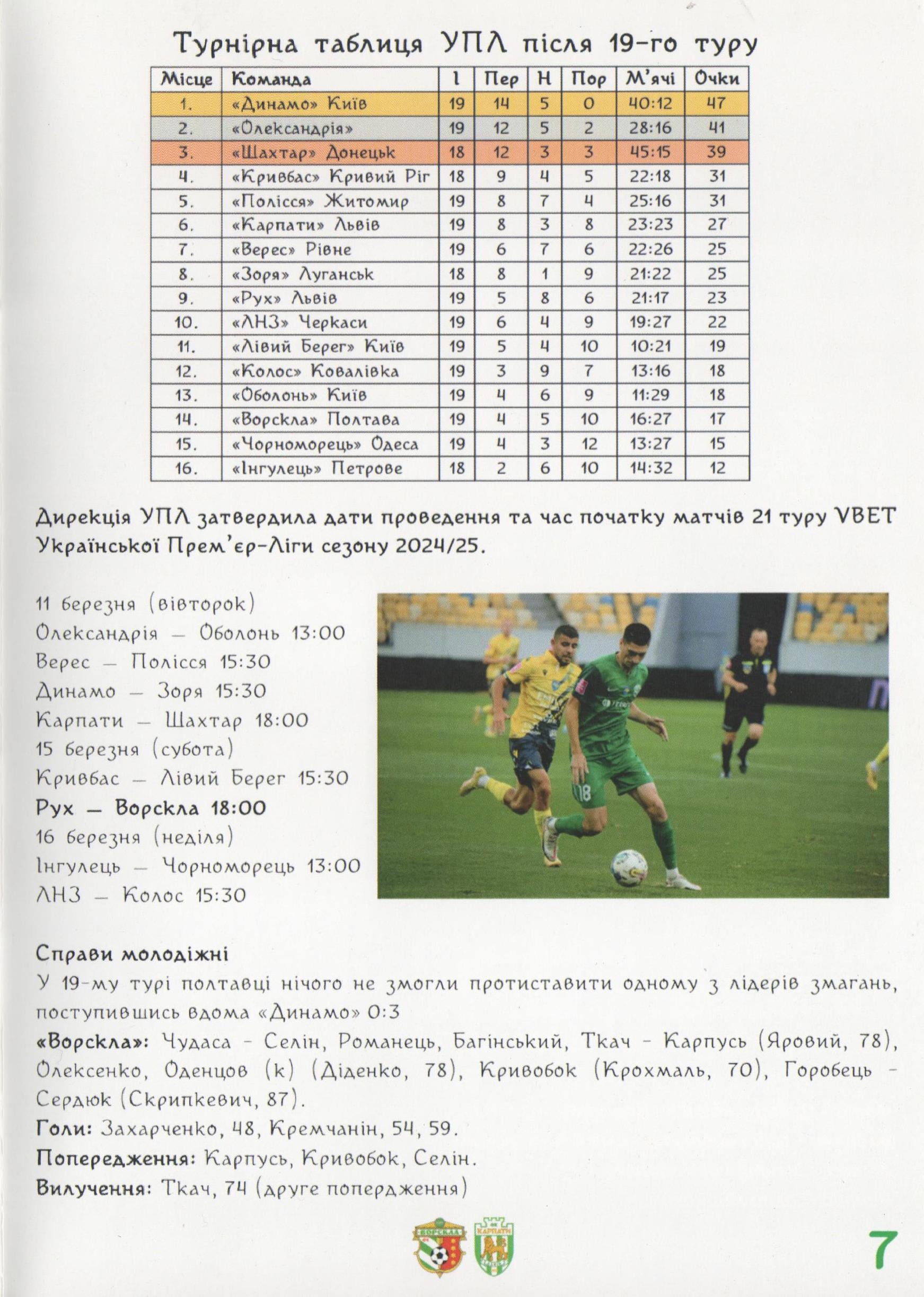 Чемпіонат України. 2024-2025. Прем’єр-ліга. 20 тур.