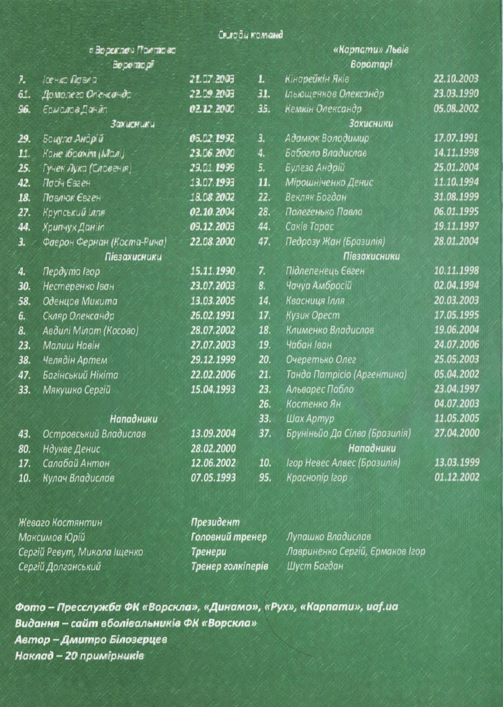 6 березня 2025 року. “Ворскла” – “Карпати” Львів 0:0