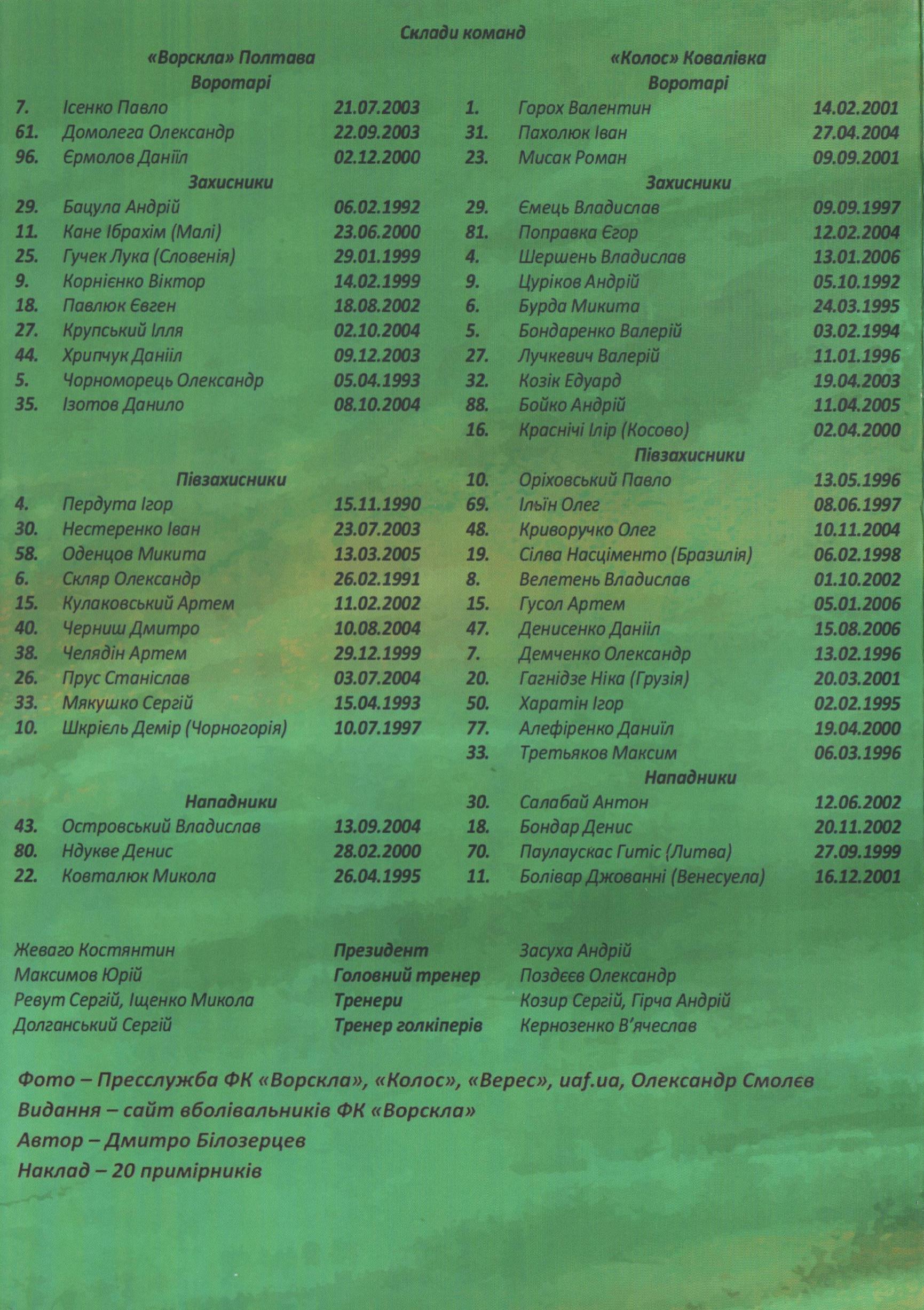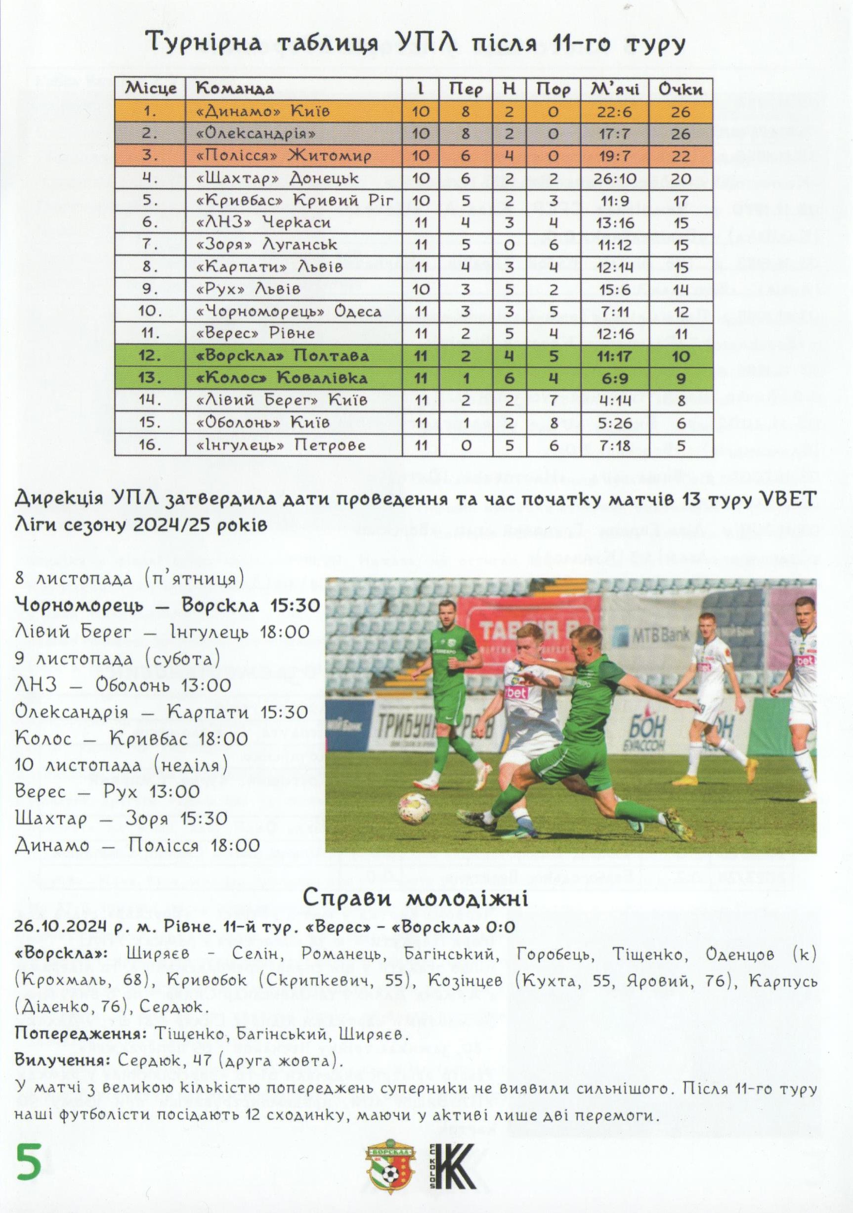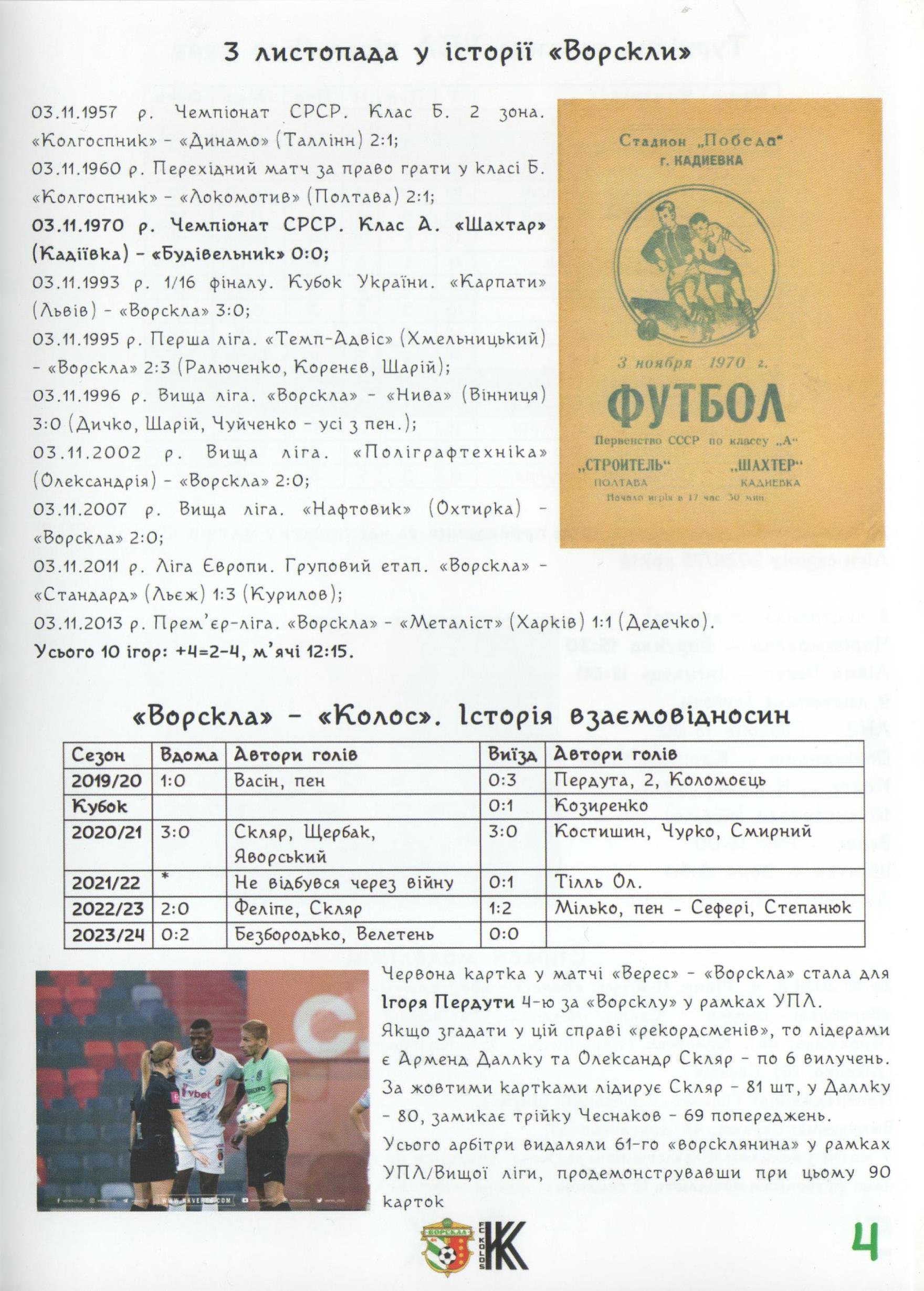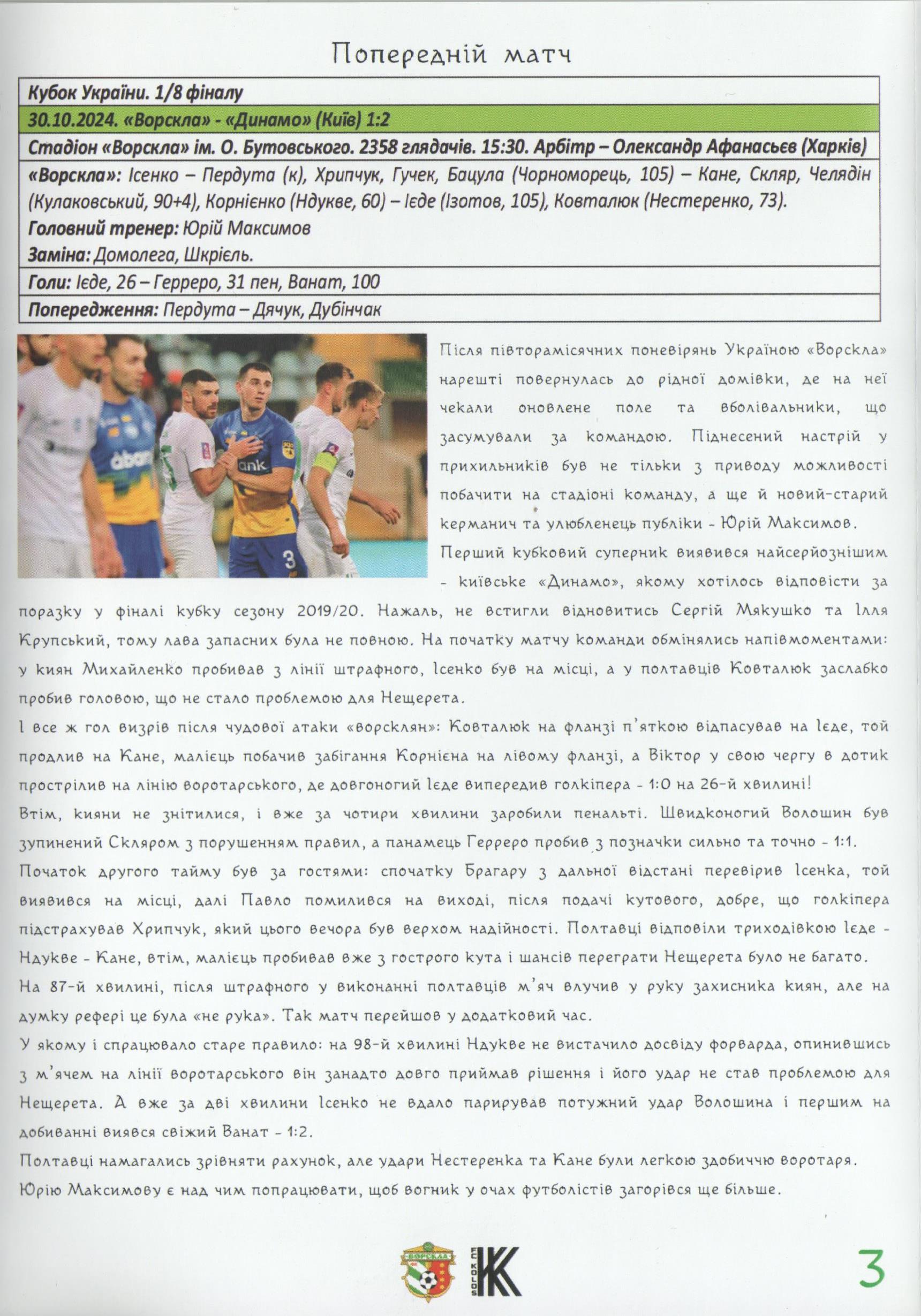 3 листопада 2024 року. “Ворскла” – “Колос” Ковалівка 0:1