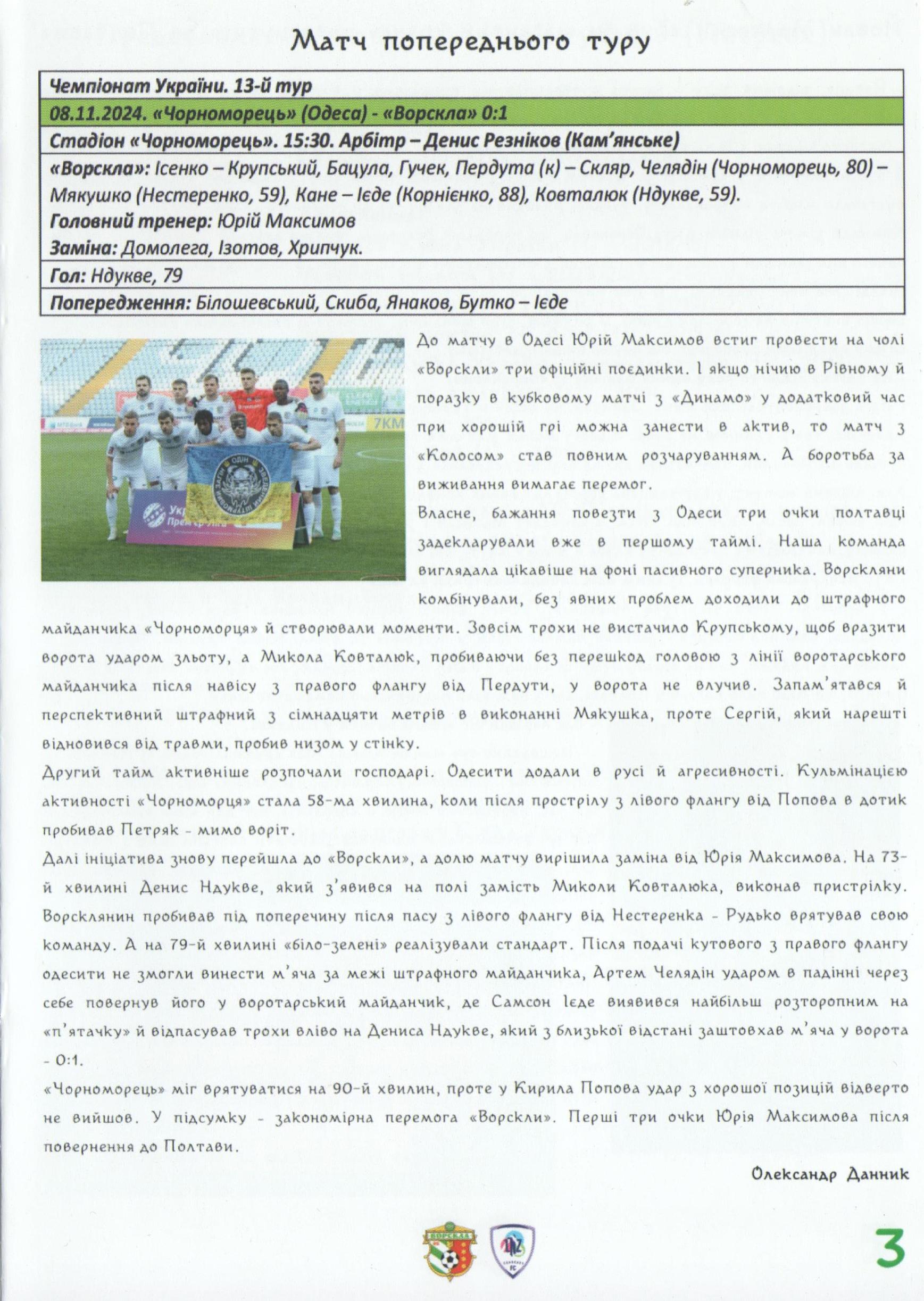 23 листопада 2024 року. “Ворскла” – ЛНЗ Черкаси 2:0