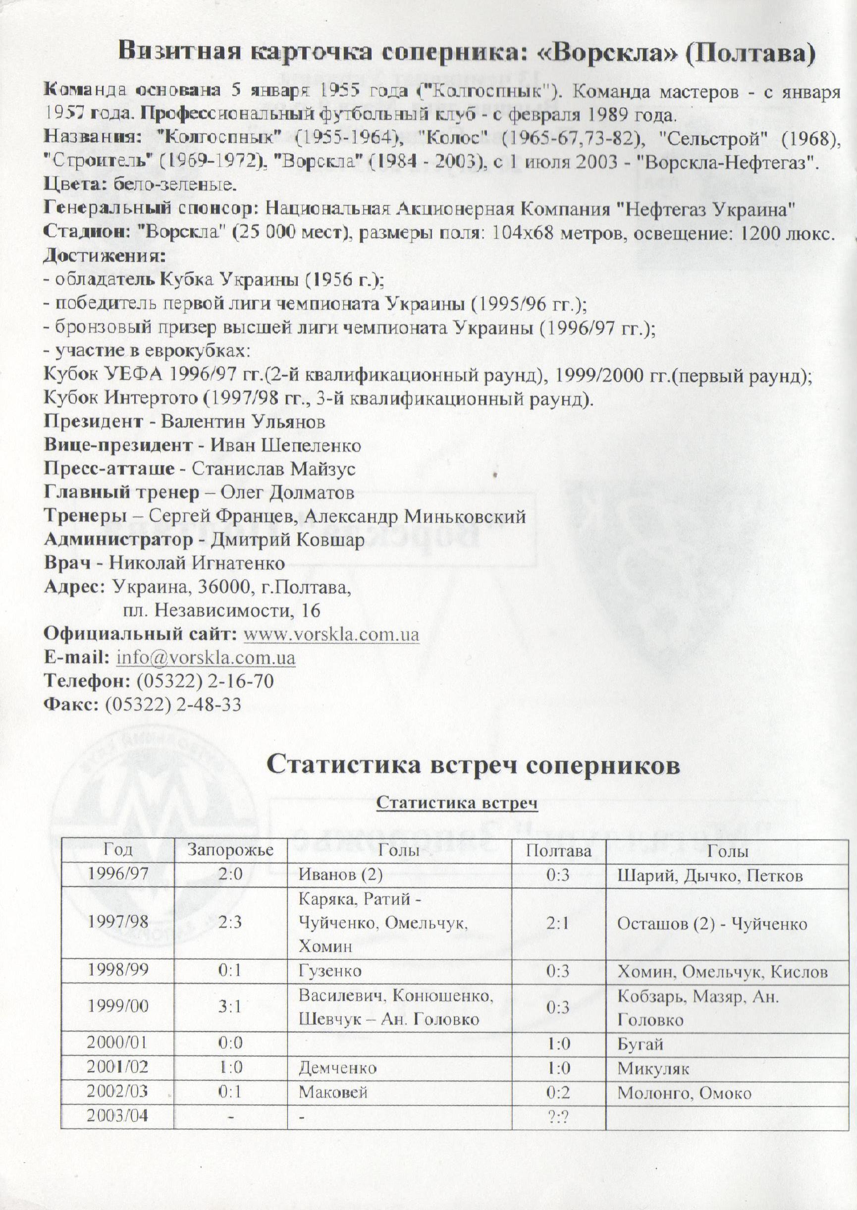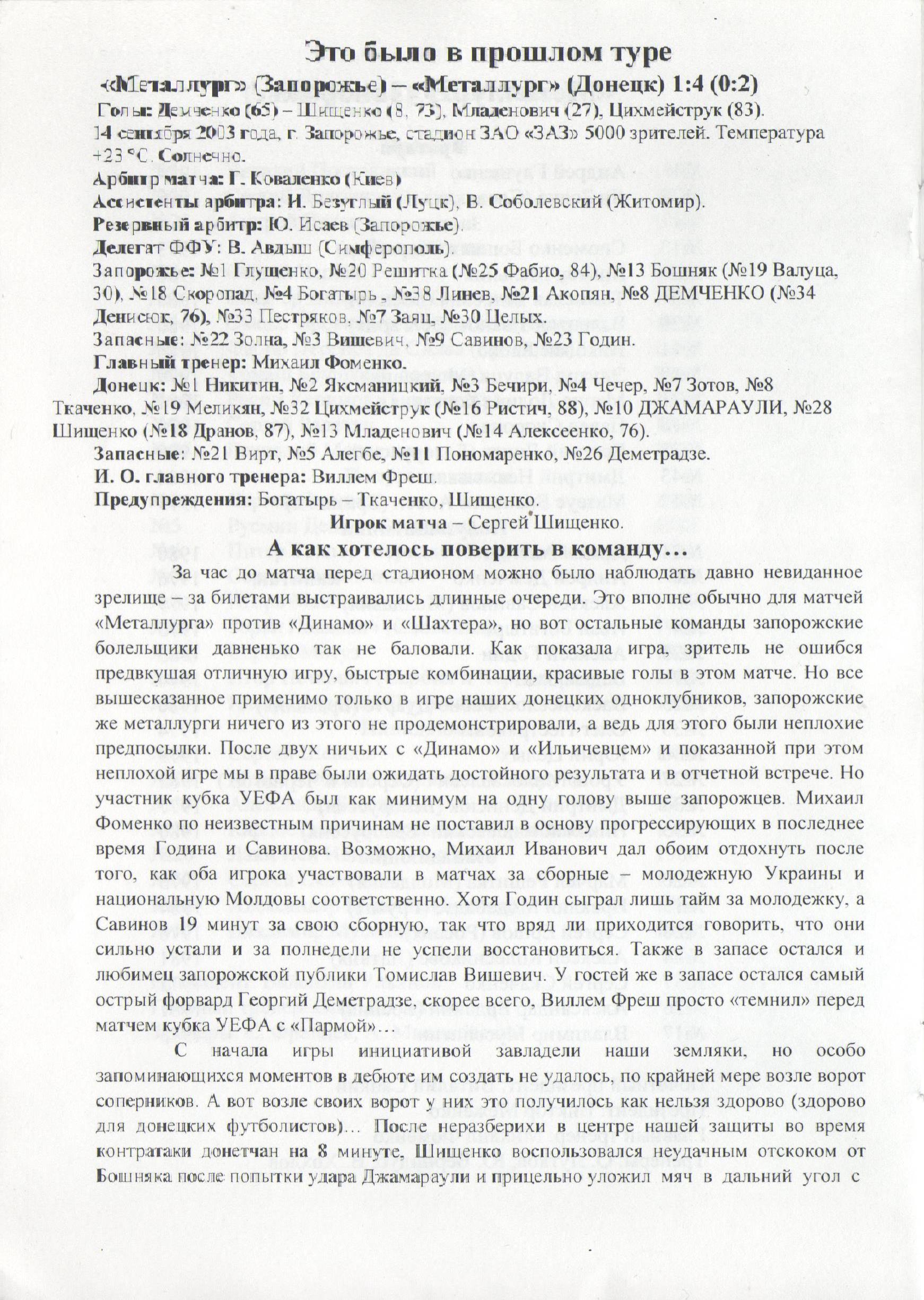 20 вересня 2003 року. “Ворскла” – “Металург” Запоріжжя – 1:0