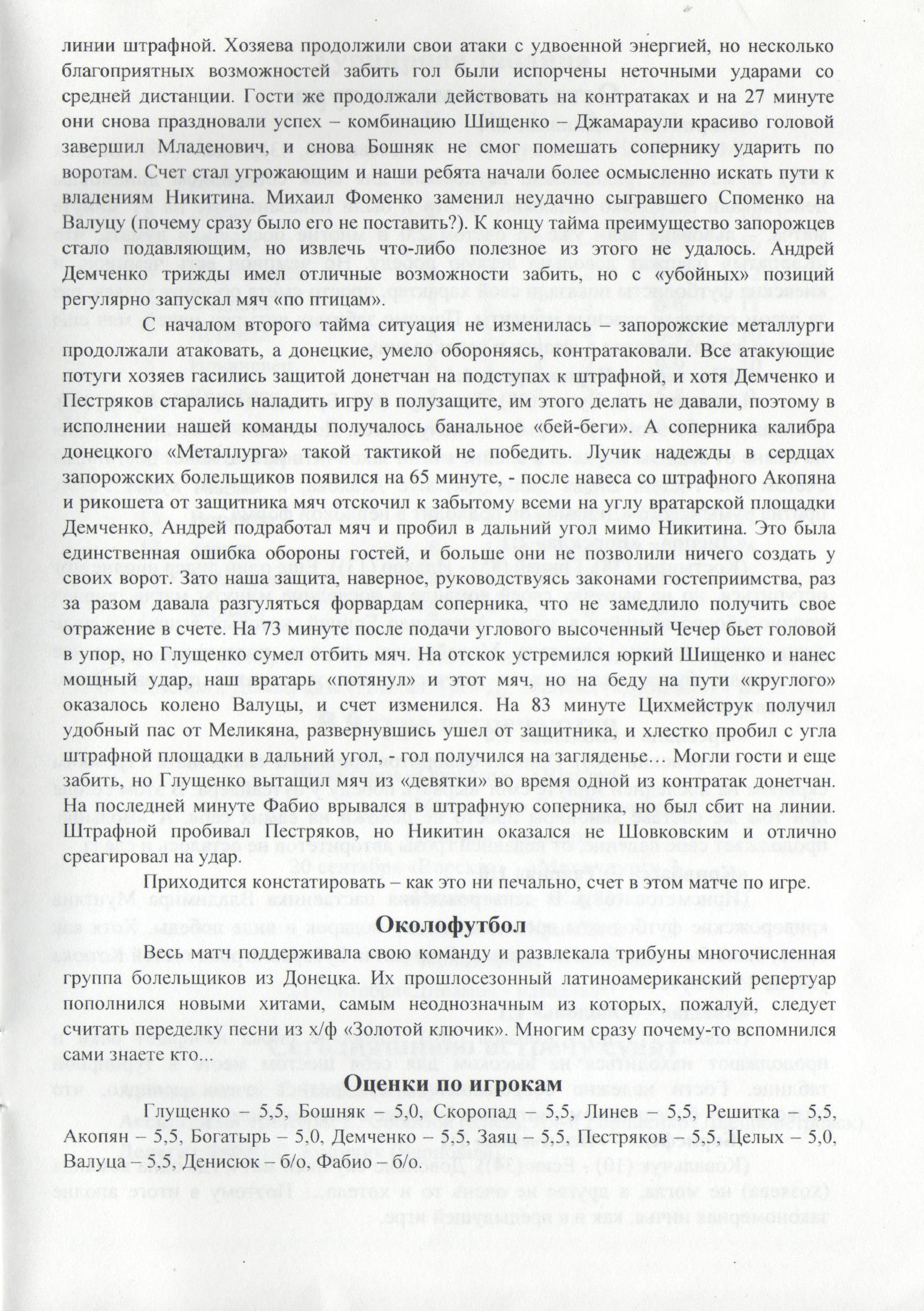 “Ворскла” – “Металург” Запоріжжя (Чемпіонат України. 2003-2004. Вища ліга. 9 тур) Альтернатива 2