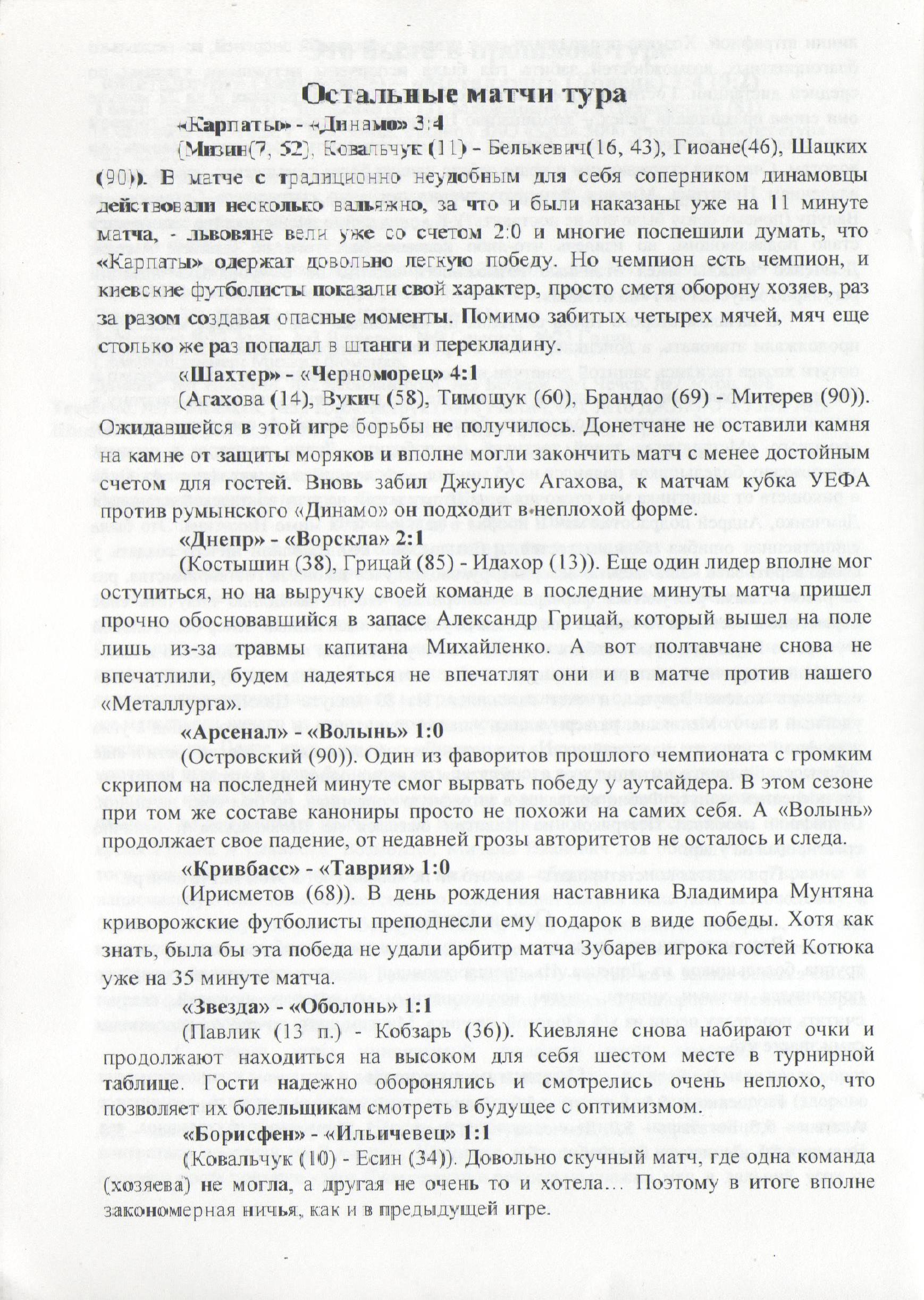 Чемпіонат України. 2003-2004. Вища ліга. 9 тур.