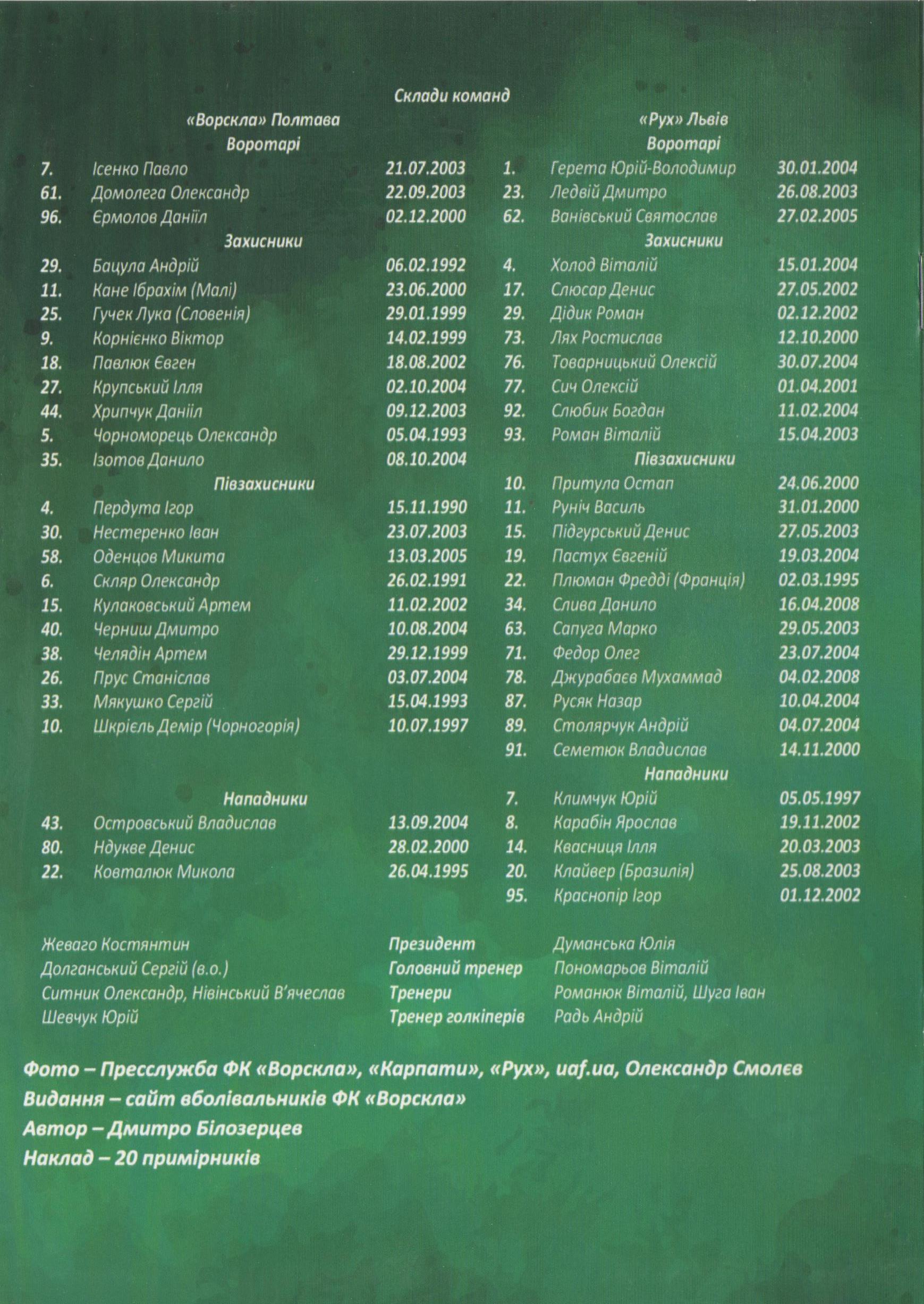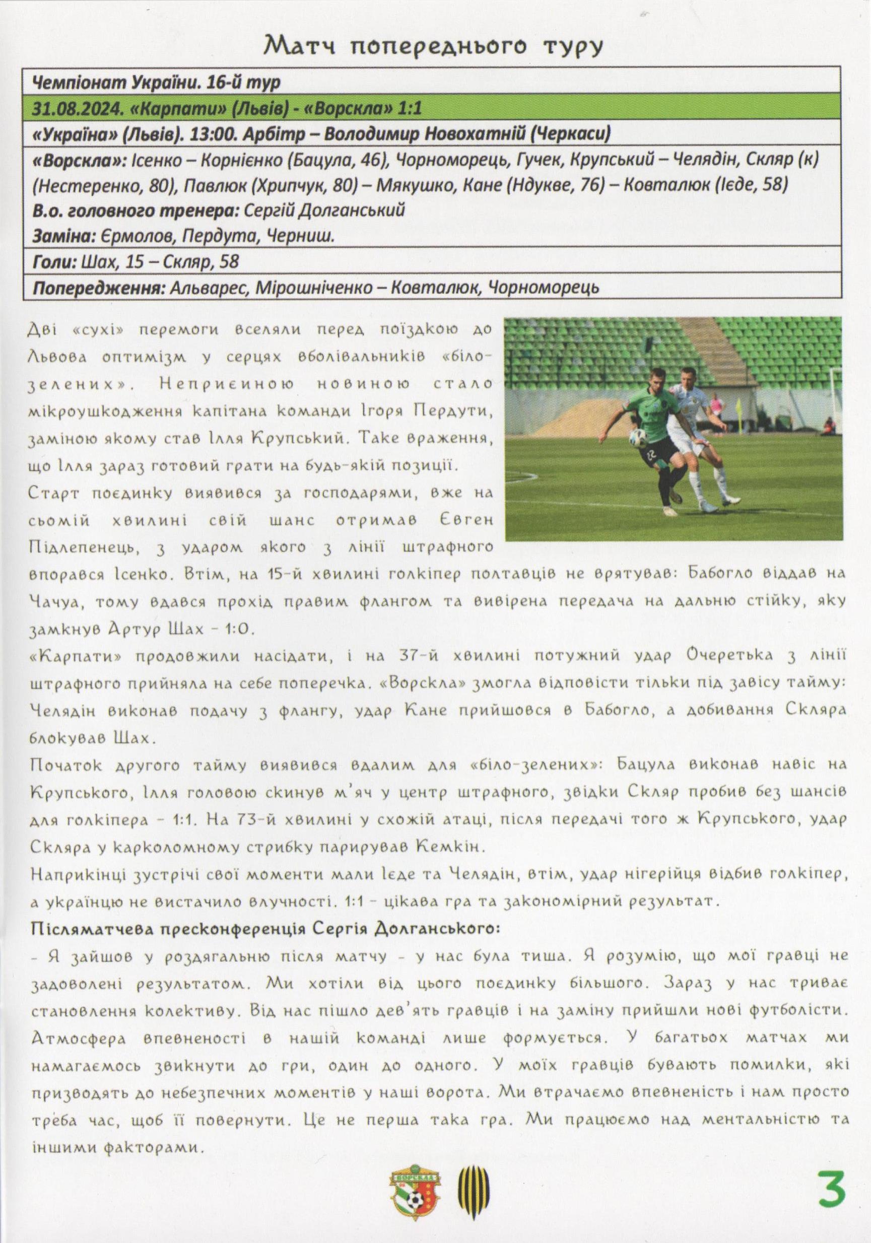 15 вересня 2024 року. “Ворскла” – “Рух” Львів 0:0
